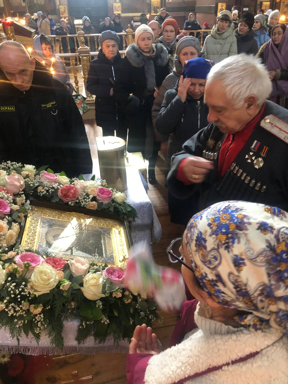 В молебне приняли участие атаманы и Казаки Екатеринодарского казачьего отдела Кубанского казачьего войска, прихожане храма Дмитрия Солунского. По окончании молебна все приложились к чудотворной святыне, отец Николай прочитал проповедь о необходимости объединения усилий молитв.