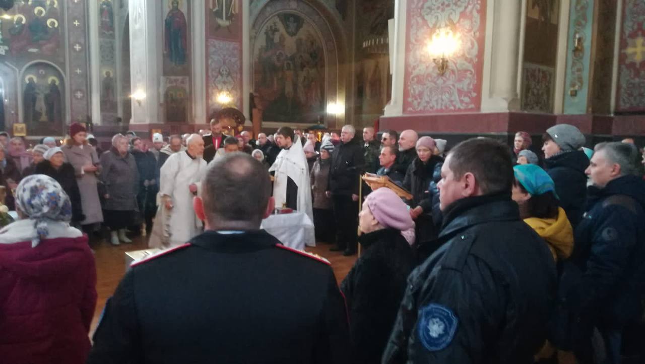 Сегодня в Свято-Екатерининском кафедральном соборе города Краснодара духовник Екатеринодарского казачьего отдела, настоятель храма Дмитрия Солунского иерей отец Николай Симора совершил молебен с чтением акафиста перед чудотворной иконой Пресвятой Богородицы «Умягчение злых сердец».