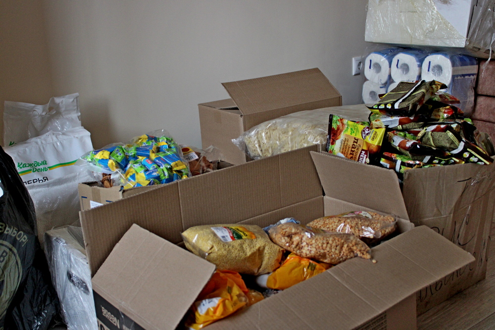 Для жителей Донбасса были собраны продукты питания, консервы, крупы, макаронные изделия, средства гигиены, питьевая вода, чай и прочие средства и продукты питания первой необходимости.