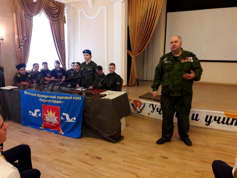 31 января в рамках Краевой акции «Мы идем снова там, где гремела война» школьным краеведческим поисковым отрядом «Патриоты Кубани» МБОУ СОШ №89 имени генерал-майора П.И. Метальникова города Краснодара был проведен Урок мужества с демонстрацией фильма «Нам доверена память» Ассоциации поисковых отрядов «Кубаньпоиск» для учеников 8-х классов лицея №48 имени А.В. Суворова г. Краснодара. На уроке присутствовало 120 человек.