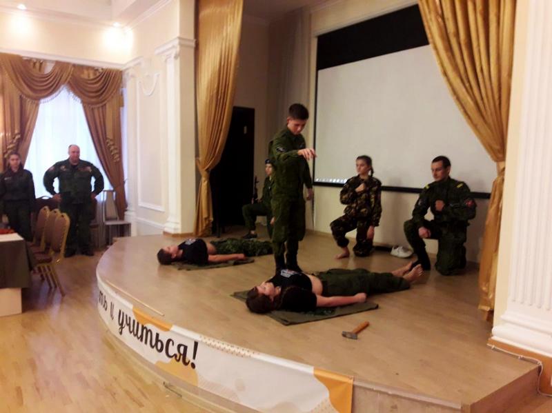 Руководитель отряда, помощник атамана хуторского казачьего общества "Юго-Западный курень" по патриотической работе Павел Боровиков рассказал присутствующим о поисковой работе и увековечении памяти павших в Великой Отечественной войне и передал в музей Боевой Славы лицея новые экспонаты. В финале урока курсанты отряда продемонстрировали показательные выступления с элементами тренингов, используемых при подготовке спецподразделений «Альфа» и «Вымпел» Федеральной службы безопасности Российской Федерации.