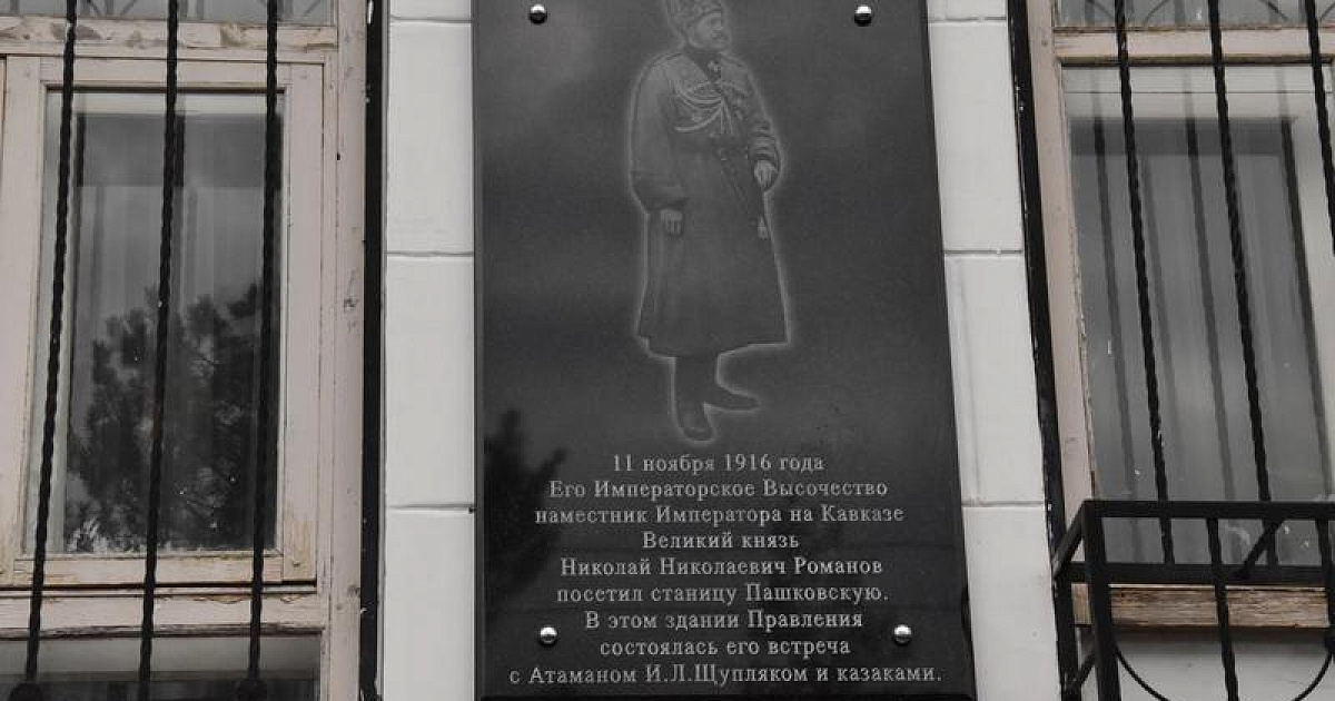 В Краснодаре торжественно открыли мемориальную доску по случаю визита в станицу Пашковскую Великого Князя Николая Романова.