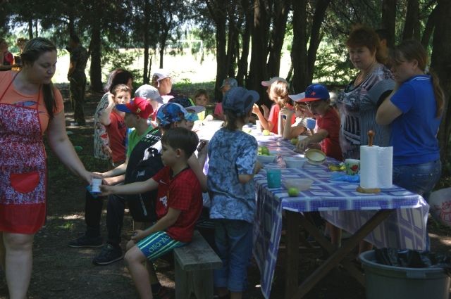 Дети с удовольствием кушали походную казачью кашу, приготовленную по особому рецепту атамана.
