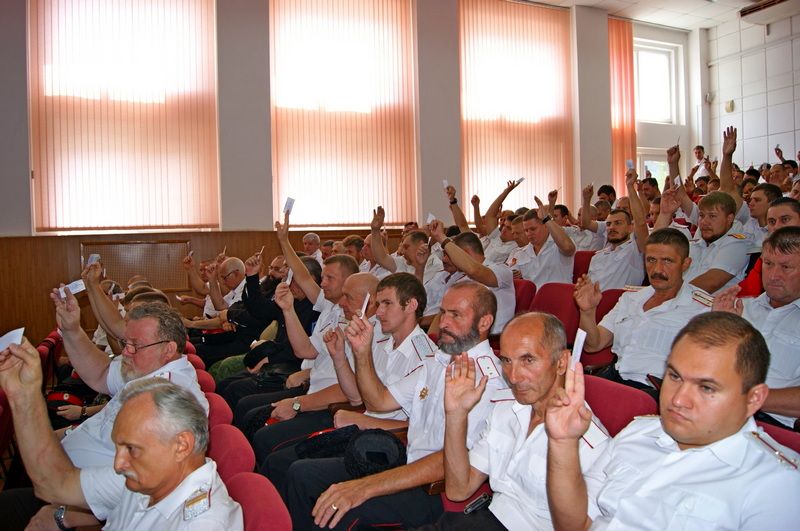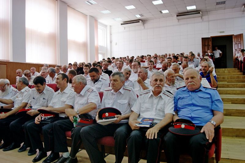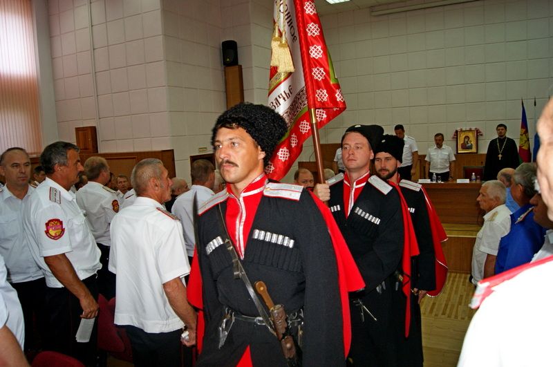28 июля более 300 казаков собрались в здании администрации западного внутригородского округа города Краснодара для проведения внеочередного сбора Екатеринодарского районного казачьего общества.