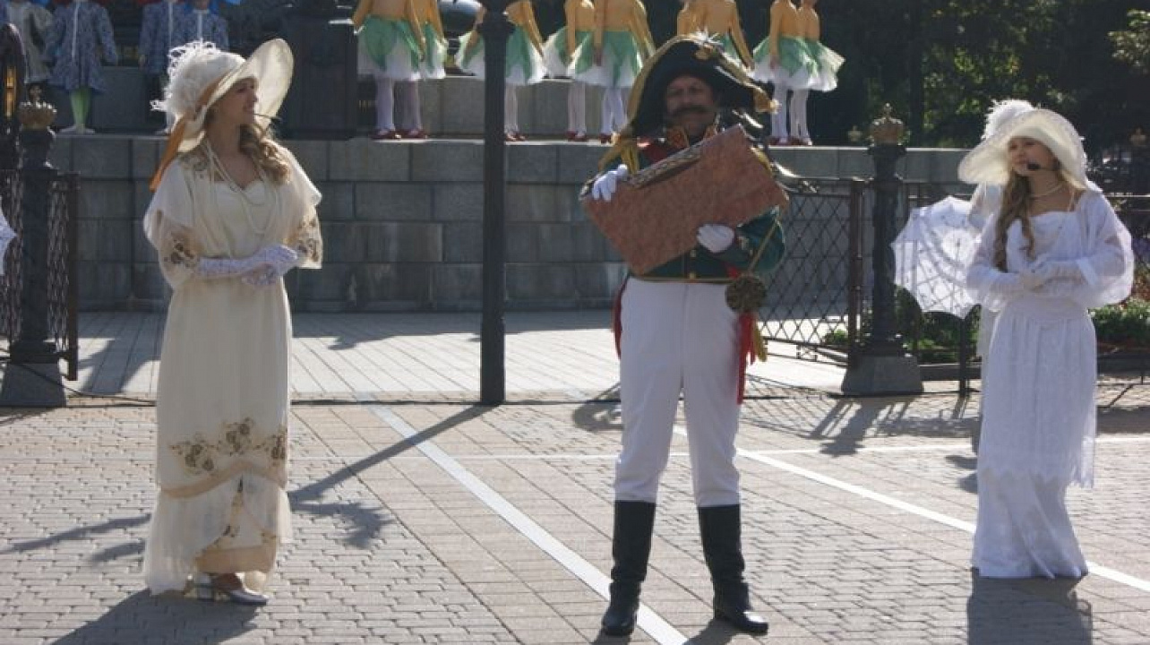 В Екатерининском сквере собрались казаки города и представители администрации, чтобы встретить гостей- представителей иностранных делегаций, представителей городов побратимов: Карлсруэ (Германия), Бургаса (Болгария) и Харбина (Китай).