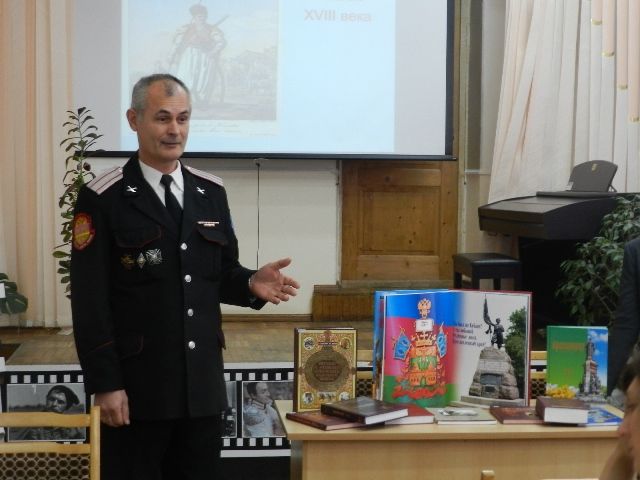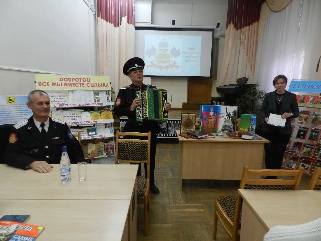 28 октября в читальном зале центральной городской библиотеки имени Н.А. Некрасова заместитель атамана Екатеринодарского районного казачьего общества казачий полковник Виктор Мастихин встретился со студентами Краснодарского кооперативного института.