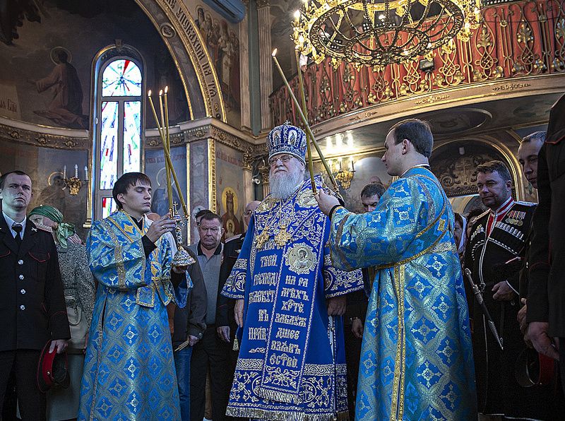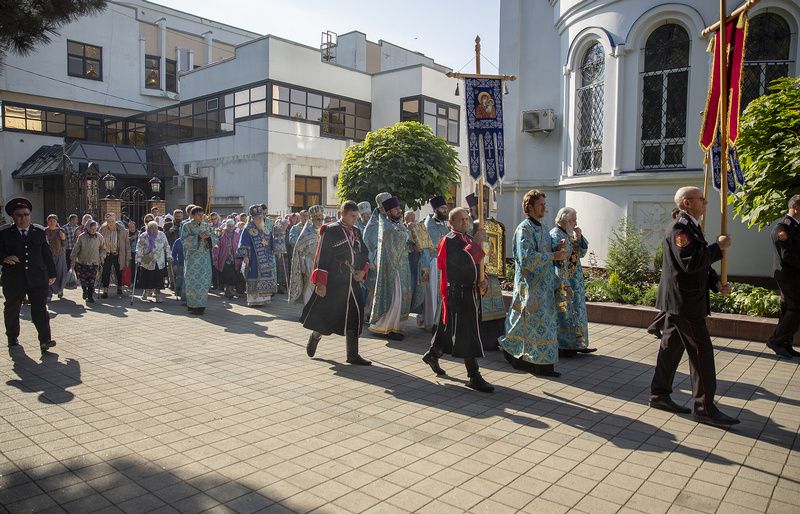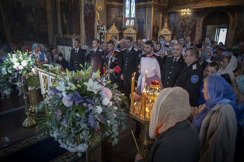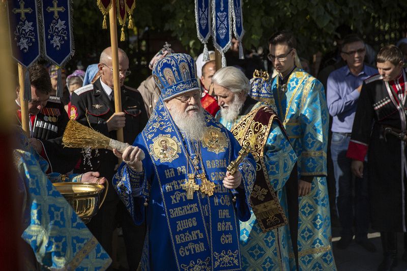 В богослужении поучаствовали казаки Екатеринадарского РКО из хуторского казачьего общества «Надежда Возрождения» во главе со своим атаманом Игорем Гончаровым и казаки из ХКО «Курень Сады».