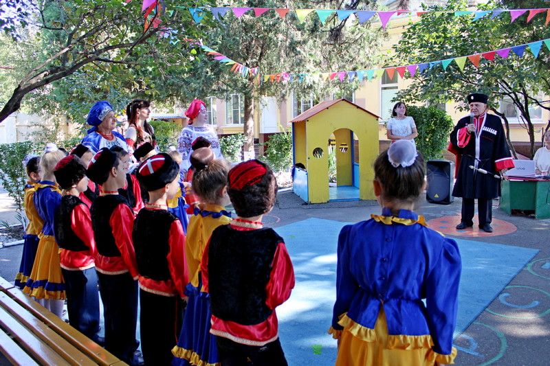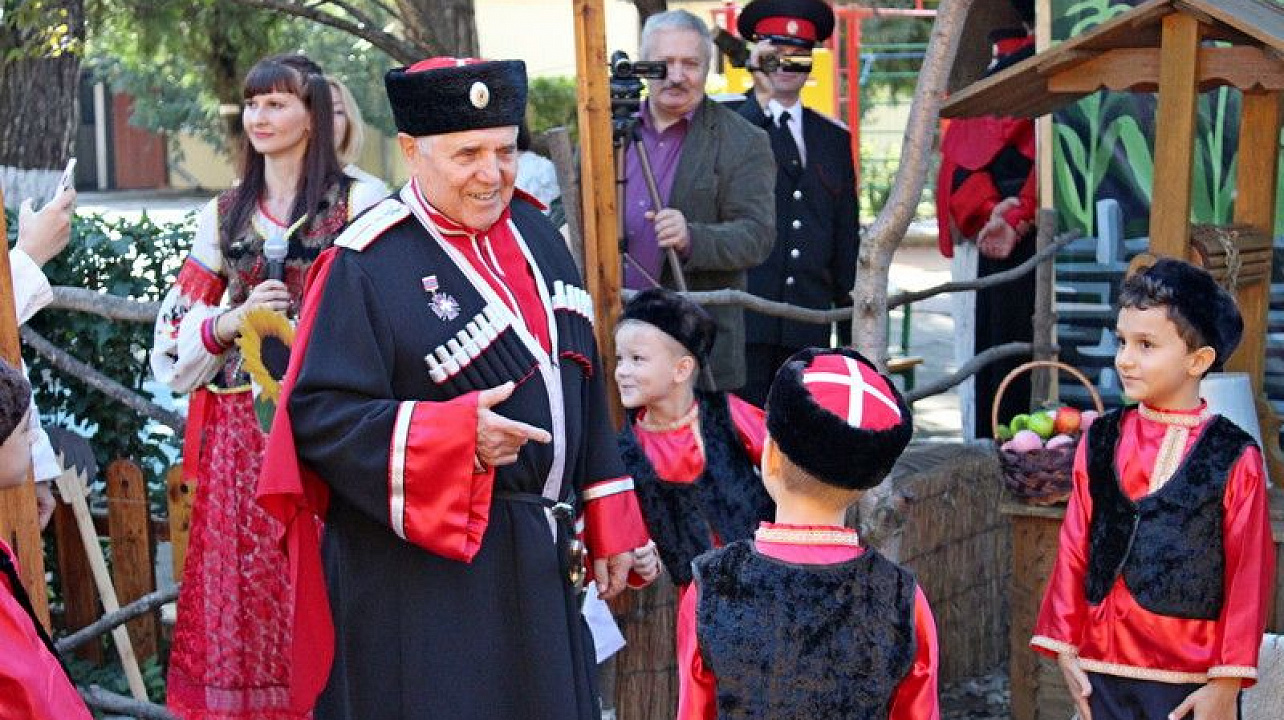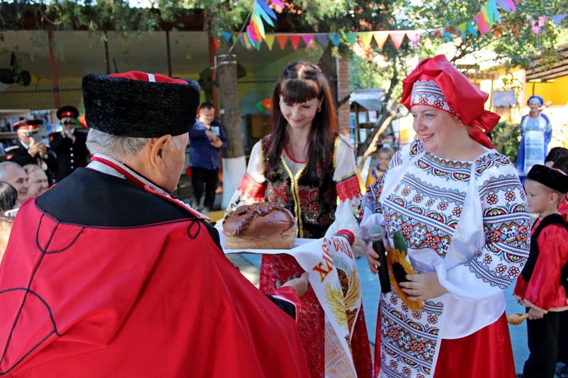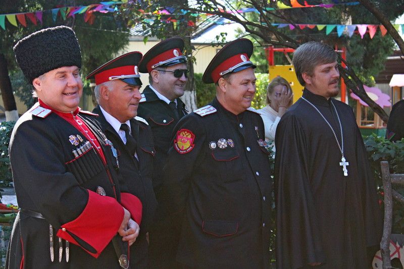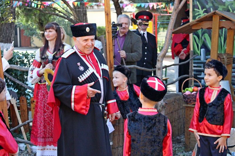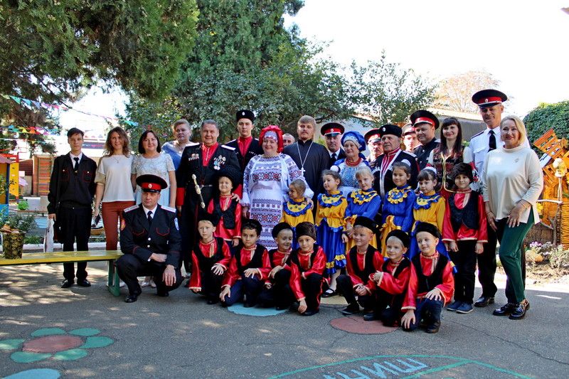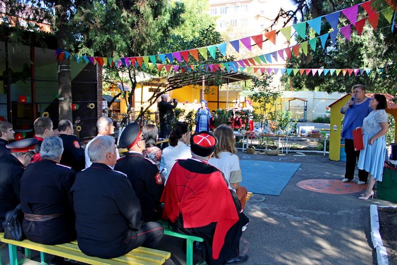 Под конец торжественного открытия выступил атамана ХКО «Суворовский редут» со словами благодарности ко всем сотрудникам детского сада, казакам, почётным гостям и конечно же юным казачатам за их красочные выступления и подаренные эмоции, а также подарил детскому саду набор детских книг и плакатов по истории Кубансокого казачества и города Краснодара.