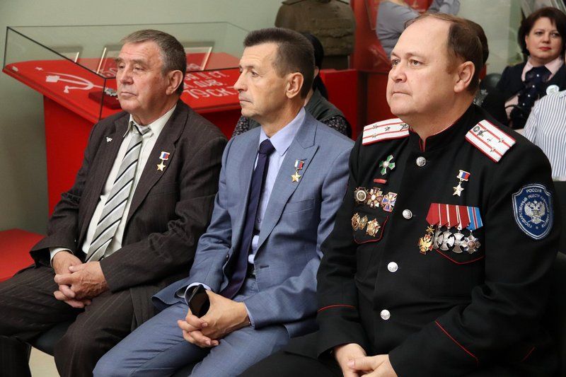 На мероприятии присутствовали сразу три Героя России: Евгений Шендрик, председатель комитета Законодательного Собрания Краснодарского края по военным вопросам, общественной безопасности, воспитанию допризывной молодёжи и делам казачества, Виктор Маркелов, председатель Краснодарской краевой общественной организации Героев, и подполковник Сергей Палагин. Поделились воспоминаниями о службе в Вооруженных силах и боевых подвигах друзей и однополчан.