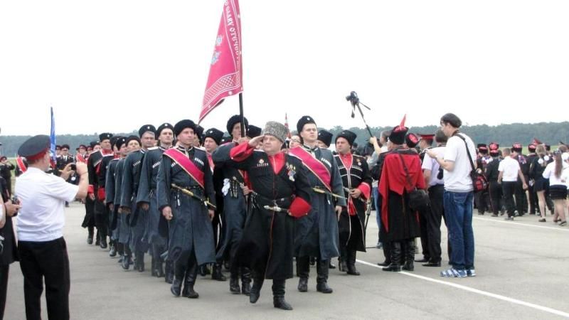 А после парадные расчеты казаков, кадетов и учащихся казачьих классов прошли по плацу маршем в сопровождении духового оркестра.