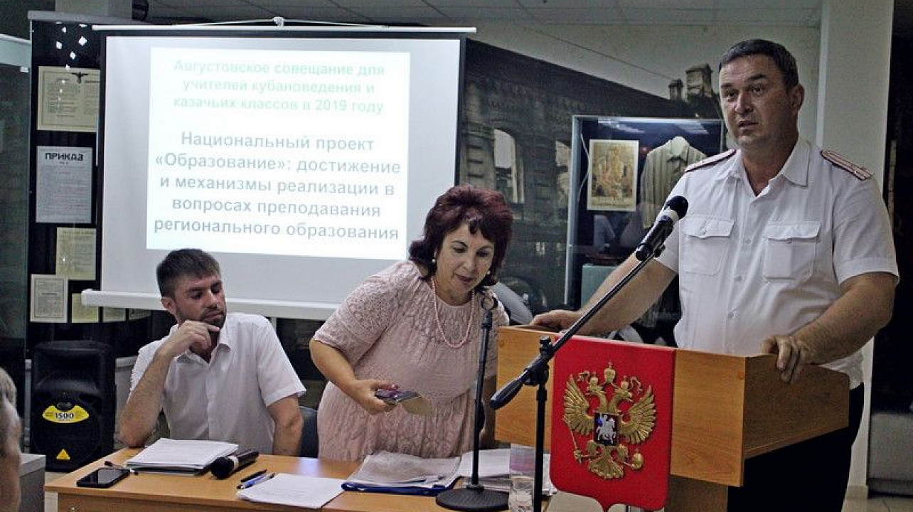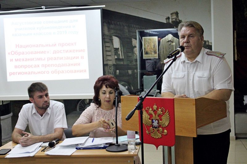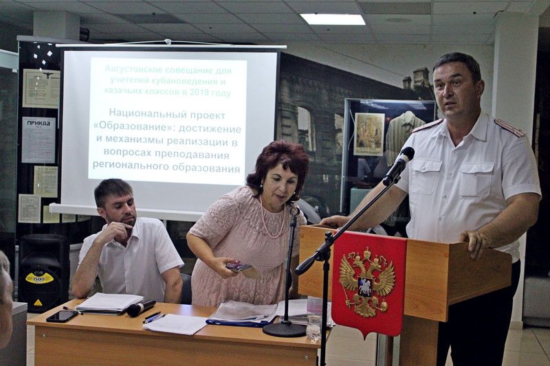 3 сентября 20193 сентября 2019 года в Краснодарском государственном историко-археологическом музее-заповеднике имени Е.Д. Фелицына состоялось совещание-семинар городского методического объединения учителей кубановедения, классов казачьей направленности, а также казаков-наставников». На нём присутствовало около 100 педагогов школ города, а также казаки-наставники Екатеринодарского отдела Кубанского казачьего войска.
