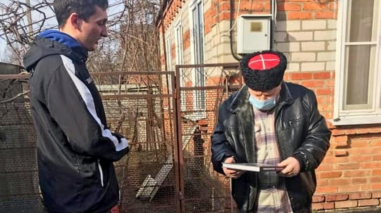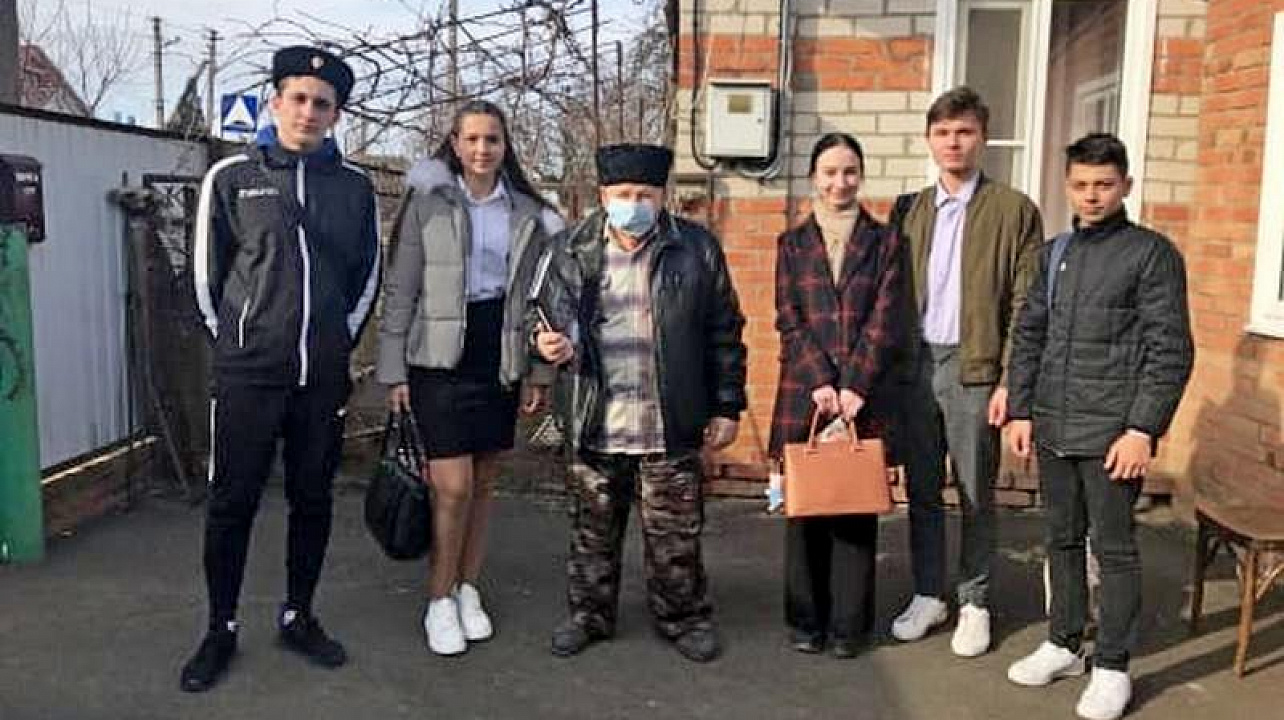 3 февраля участники краснодарского муниципального отделения Союза казачьей молодёжи Кубани из 10Б класса казачьей школы № 61 вместе с казаком-наставником Екатеринодарского районного казачьего общества Игорем Хробостовым поздравили с 82-м Днём рождения члена Совета стариков ХКО «Курень Каширинский» сотника Виктора Алексеенко.