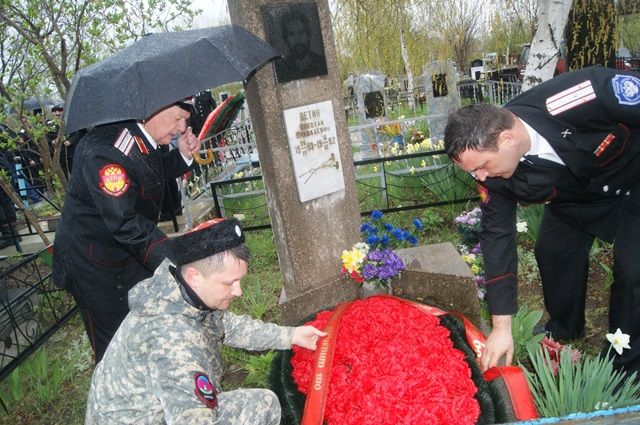 Иеромонах Спиридон отслужил молебен об упокоении душ воинов, погибших на поле брани, после чего казаки возложили венки и цветы к могилам своих боевых товарищей.