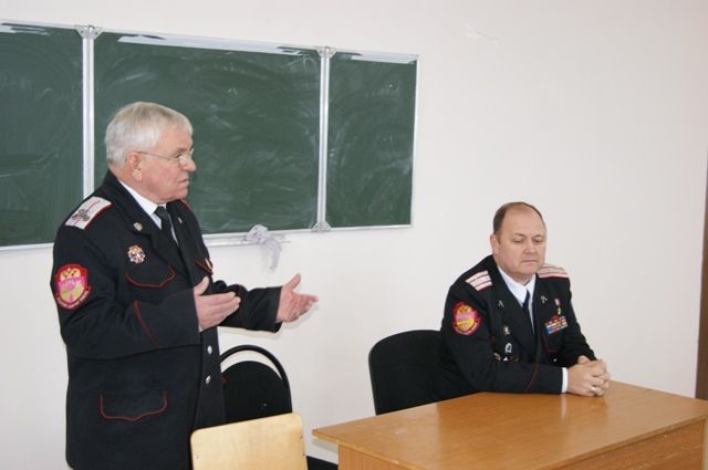 В начале встречи заместитель атамана Екатеринодарского районного казачьего общества, есаул Николай Левен рассказал учащимся об участии казаков в Великой отечественной войне, представив почётного гостя- Героя Российской Федерации, помощника атамана Екатеринодарского районного казачьего общества, войскового старшину Сергея Палагина. Сергей Вячеславович рассказал ребятам о своих подвигах и о подвигах тех солдат и офицеров, с которыми он воевал. Так же он рассказал о том, как и где проходят службу казаки призванные в ряды Вооружённых сил России и какие у них привилегии.