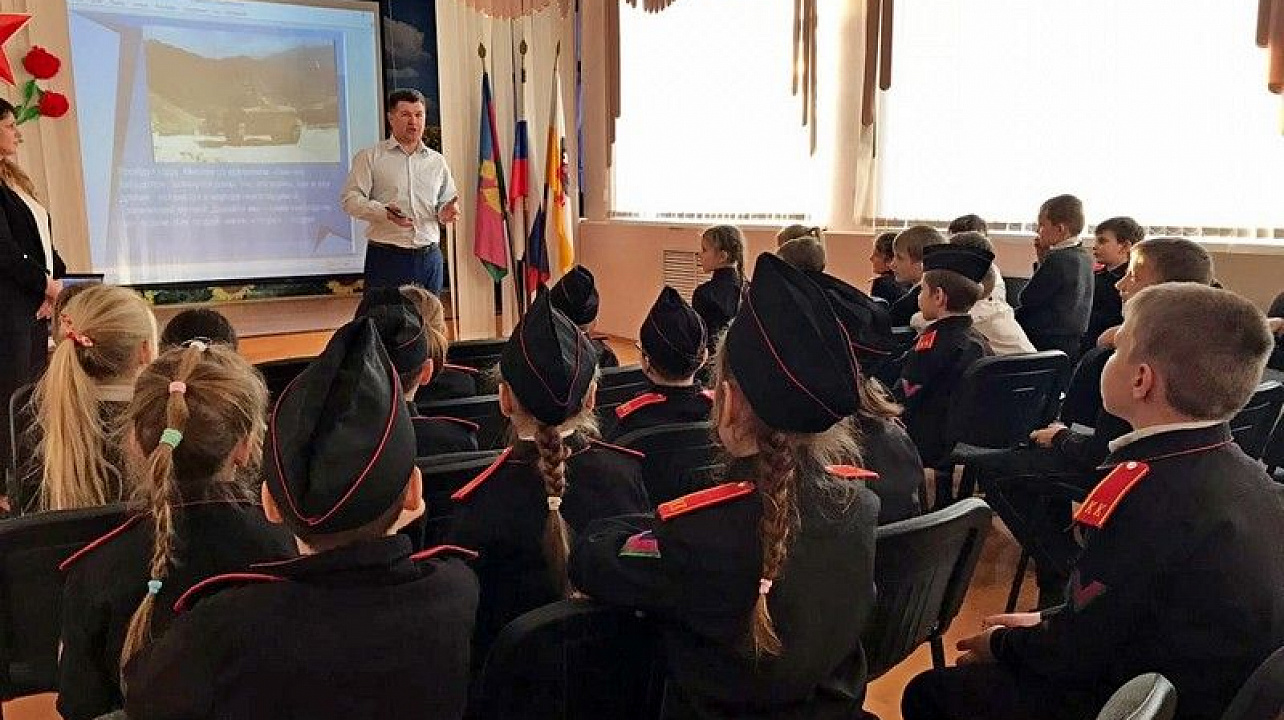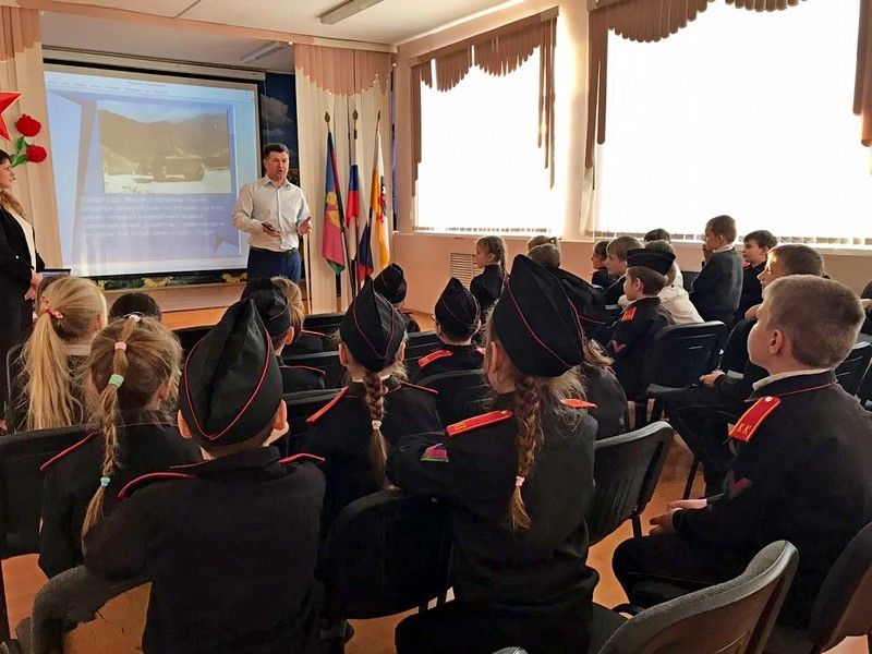 4 февраля с учащимися казачьих классов МБОУ ООШ № 79 встретился полковник, ветеран боевых действий в Таджикистане Чугунов Евгений Валерьевич. Евгений Валерьевич рассказал ученикам о локальных конфликтах, в которых приходилось участвовать советским солдатам на благо Родины, интересные и необычные истории. Казачатам очень понравилась встреча, которую они запомнят надолго. Ребята поблагодарили полковника творческим номером.