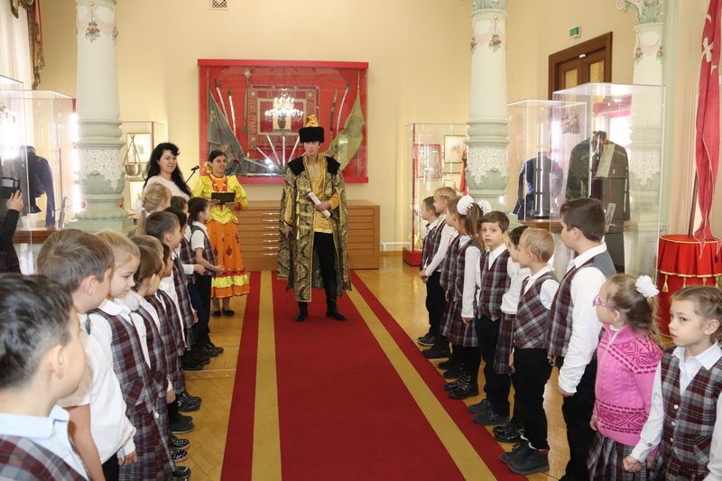 По доброй традиции сотрудники музея подготовили для учеников театрализованное представление с участием атамана и покровительницы казачества, императрицы Екатерины II.