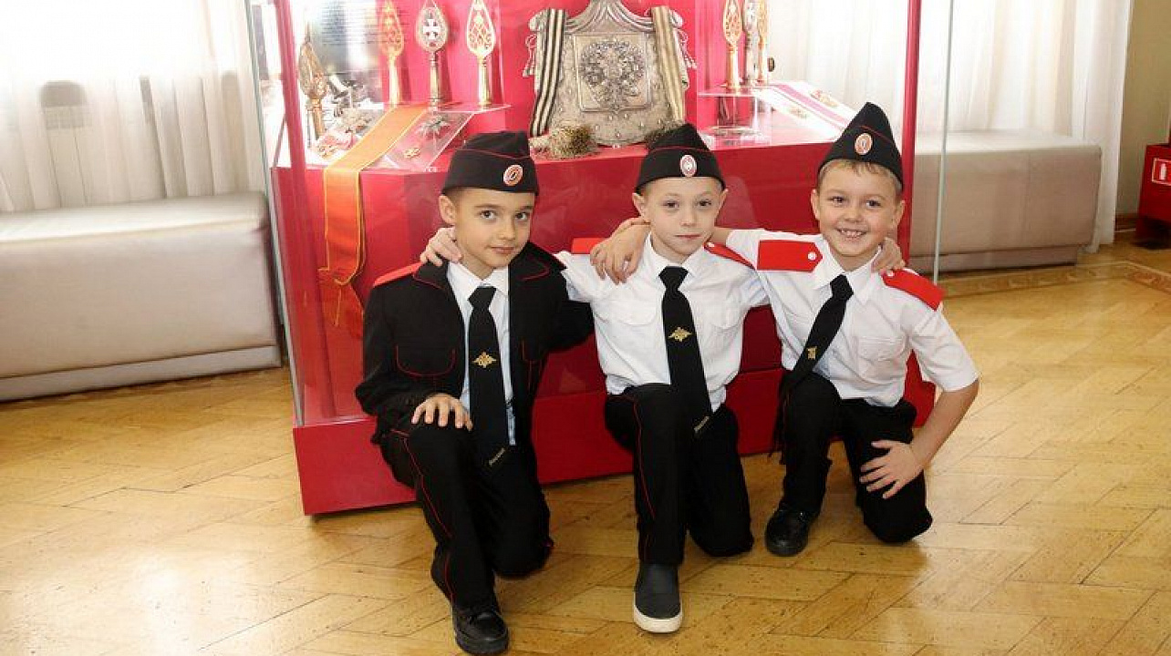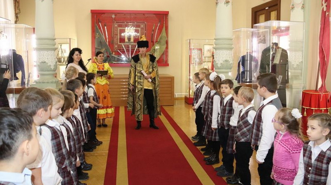Более 300 первоклассников в торжественной обстановке в главном зале музея "Регалии и реликвии Кубанского казачьего войска" вступили в ряды Кубанского казачества.