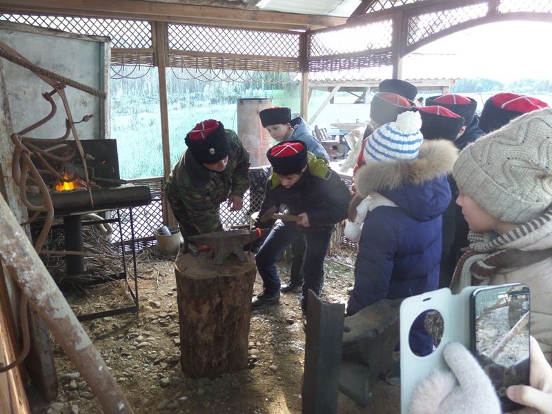 В ходе урока-экскурсии ребятам были показаны приёмы владения казаками шашкой, кинжалом и арапником, а также было предложено попробовать свои силы в традиционных казачьих ремёслах.