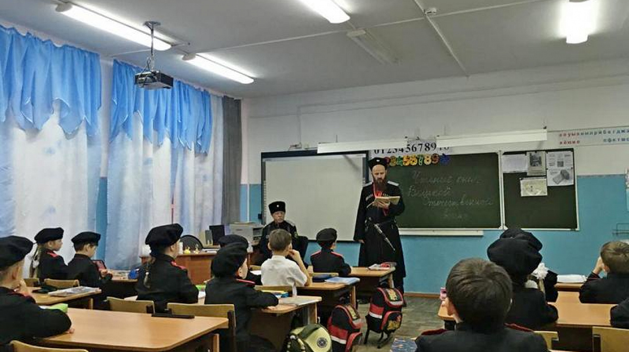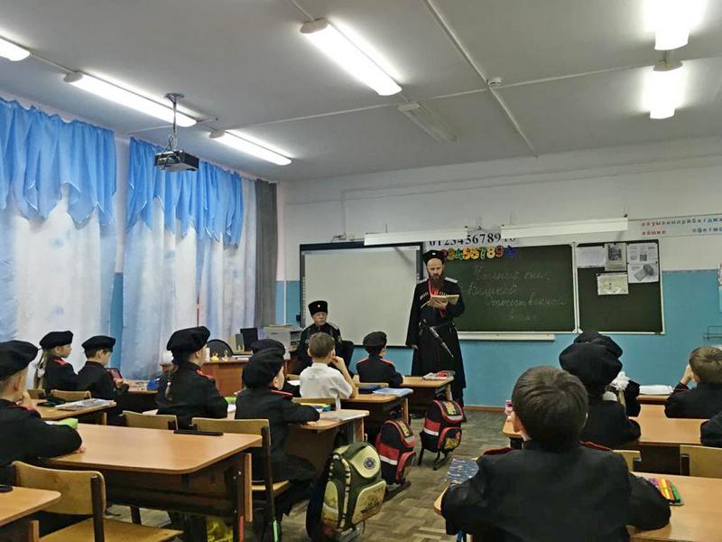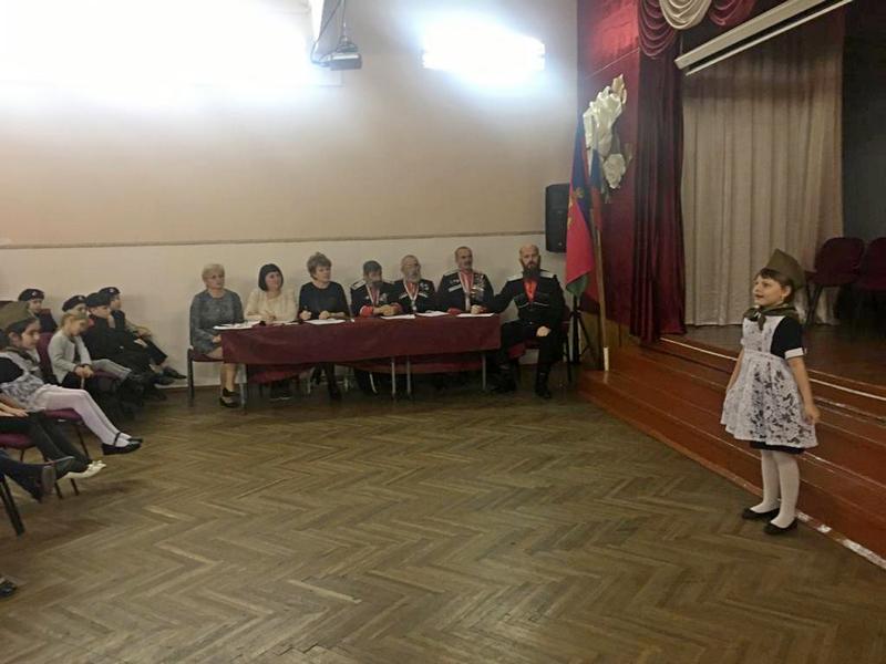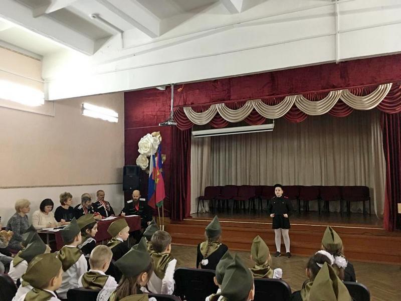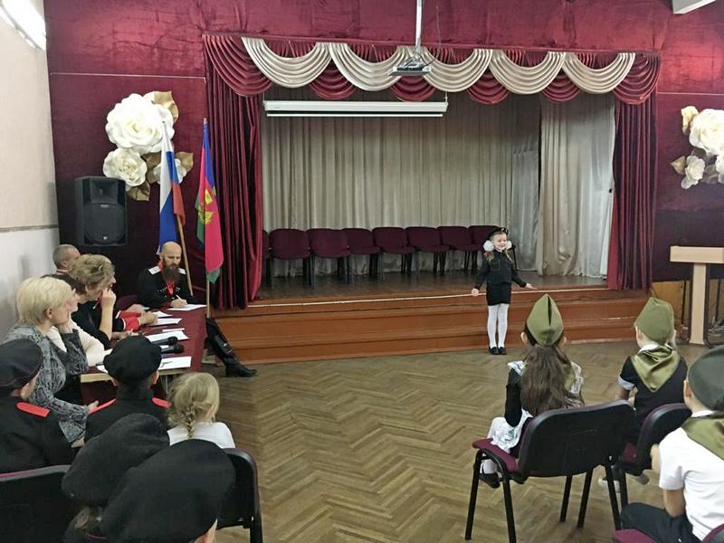 После конкурса чтецов в рамках акции "Читаем о войне" для казачат были прочитаны рассказы Сергея Алексеева казаком-наставником Екатеринодарского районного казачьего общества Вадимом Петрий. Тема рассказа «О Сталинградской битве». А уже после обеда казачата снова отправились на интересное занятие – на подготовку к предстоящему конкурсу строя и песни. В конкурсе примут участие 2а; 2б; 3б; 3в; 4б; 4в классы, лучшие будут награждены почётными грамотами атамана хуторского казачьего общества им. «Святого Георгия».