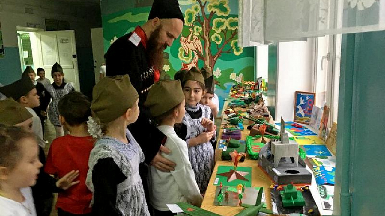 Казачата подготовили стихотворения на тему Героизма, любви к Родине, о тягости войны и о жертвах Великой Отечественной Войны. После конкурса чтецов для ребят выступил Военный оркестр главного управления Росгвардии по Краснодарскому краю. Дети и взрослые были в восторге. Казачата не остались в долгу и подготовили ответный номер. А также подготовили стенд, на котором были собраны поделки казачат.