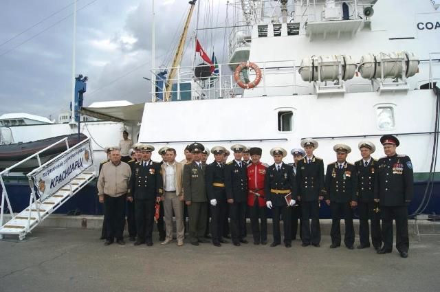 На торжественном построении, обращаясь к морякам-пограничникам, Герой России Сергей Палагин поблагодарил их за добросовестную и самоотверженную службу и вручил личному составу корабля подарочные издания по истории кубанского казачества, а командиру корабля преподнёс вымпел Российской Ассоциации Героев от имени Краснодарского краевого отделения Ассоциации: - На протяжении шести лет, крепкий и надежный экипаж пограничного сторожевого корабля «Краснодарец» обеспечивает неприкосновенность морских рубежей нашей Родины, контролирует соблюдение иностранными судами экономической зоны, обеспечивает сохранность прибрежных коммуникаций, тем самым ежедневно сохраняя суверенность Российского государства, - говорил он.