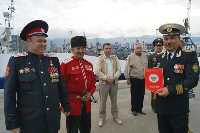 В День пограничника казаки Екатеринодарского районного казачьего общества Кубанского казачьего войска поздравили экипаж пограничного сторожевого корабля «Краснодарец» в городе Новороссийск.