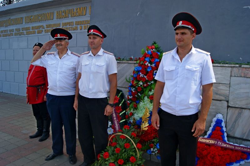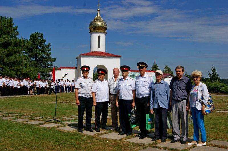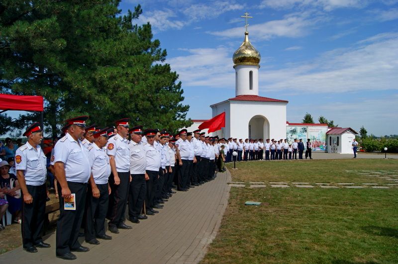 Казаки ЕРКО возложили цветы к мемориалу и посетили торжественный митинг, после чего отправились на территорию мемориального комплекса, где были расположены тематические курени, возле которых лились кубанские казачьи песни местных ансамблей.