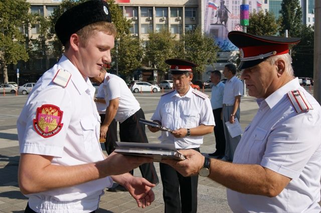 Атаман Екатеринодарского районного казачьего общества, казачий полковник Александр Пащенко поздравил лучших дружинников, вручив памятные книги и почётные грамоты от главы города и председателя городской Думы Краснодара.