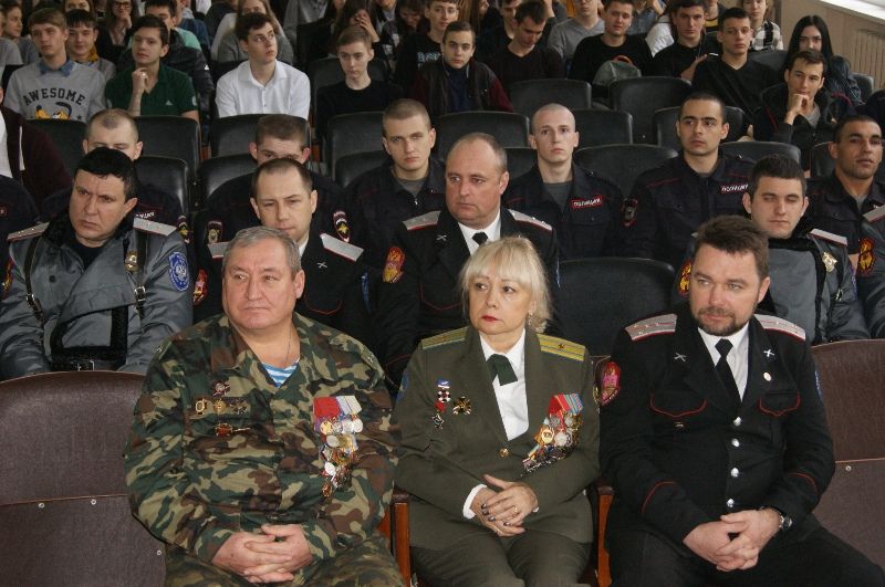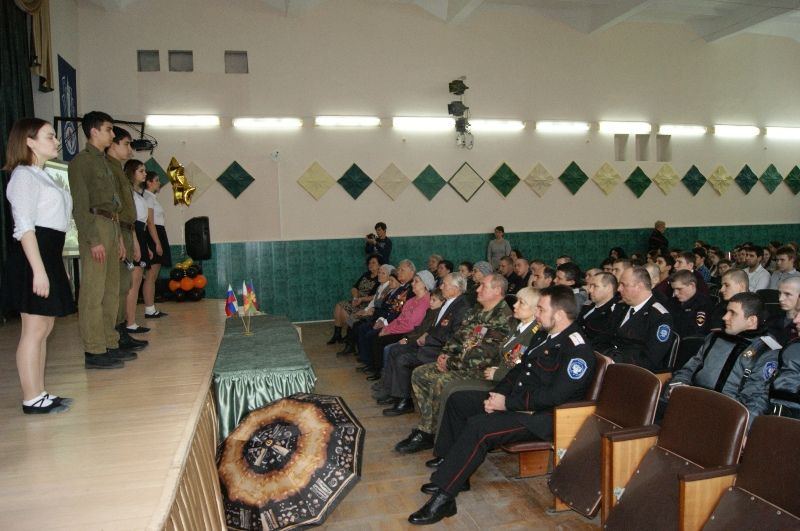 Казаки хуторских казачьих обществ «Надежда Возрождения» и «Курень Сады» совместно с ГБПОУ КК «Краснодарский архитектурно-строительный техникум» при активной поддержке депутата городской Думы Краснодара по избирательному округу № 19 Рудь Евгения Викторовича 06.02.2017 приняли участие в проведении урока мужества, посвящённому предстоящему 12.02.2017 Дню освобождения города Краснодара от фашистских захватчиков (1943).
