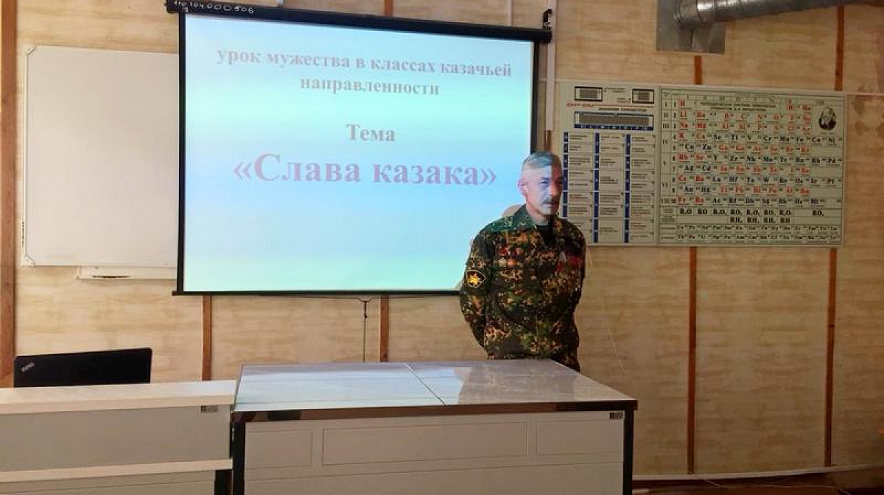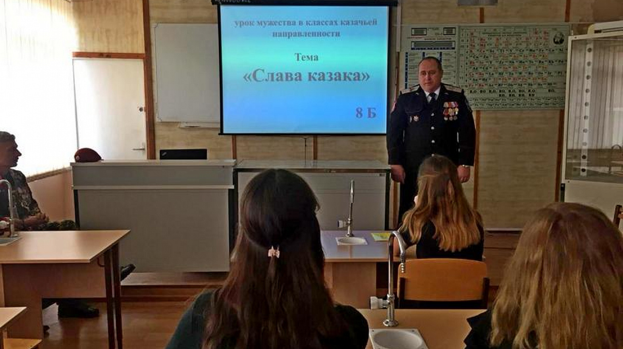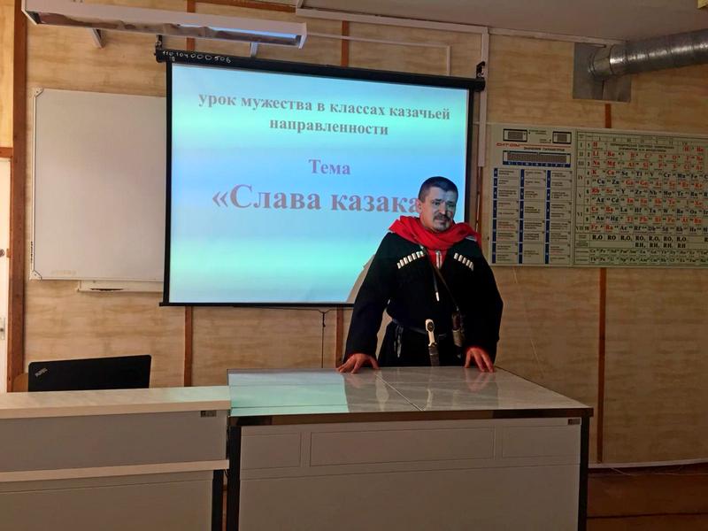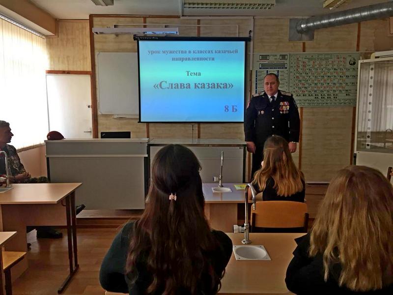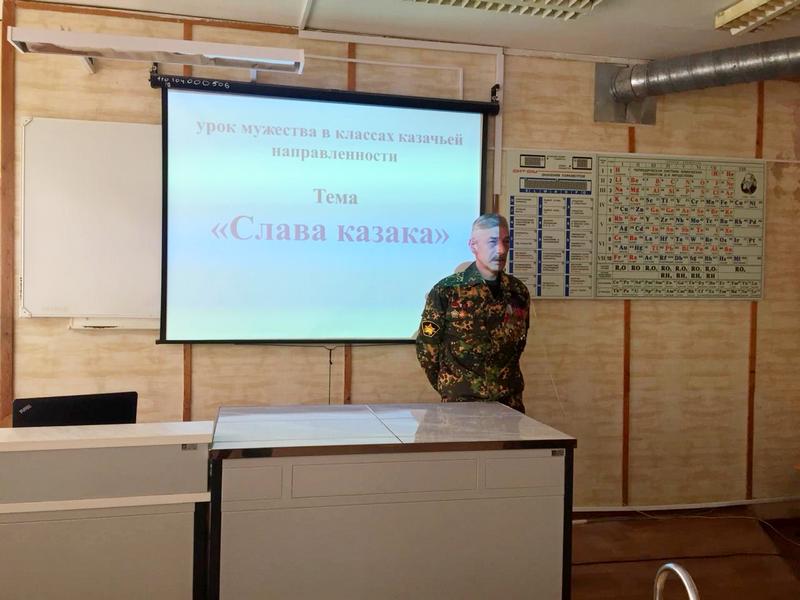 6 февраля в рамках ежегодного краевого месячника оборонно-массовой и военно-патриотической работы казаки хуторского казачьего общества «Юго-Западный Курень» и «Георгиевское» провели урок мужества в 87 школе.