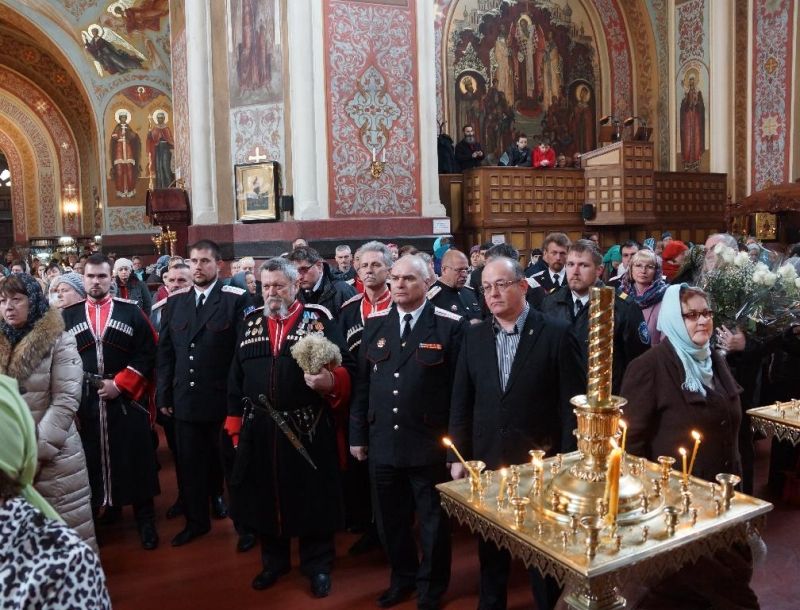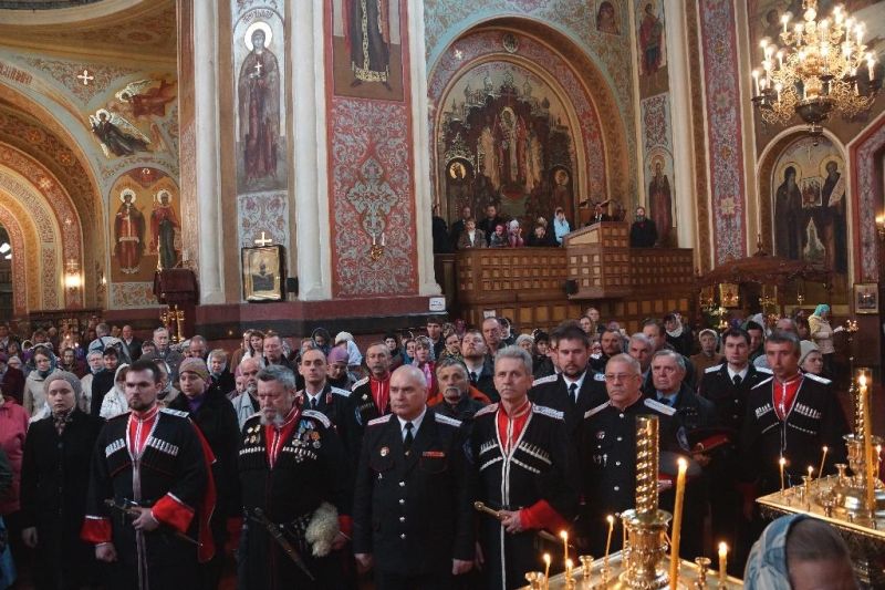 7 апреля 20145 апреля исполнилось 100 лет со дня освящения Свято-Екатерининского Кафедрального Собора. Казаки Екатеринодарского районного казачьего общества приняли участие в торжественной литургии, которую провёл Митрополит Екатеринодарский и Кубанский Исидор. Перед началом литургии казаки по сложившейся доброй традиции встретили Владыку Исидора у входа в Собор. На торжественной литургии присутствовали более 20 казаков Екатеринодарского районного казачьего общества во главе с атаманом, казачьим полковником Александром Пащенко и атаманом Екатеринодарского отдельского казачьего общества войсковым старшиной Виктором Светличным. После торжественной литургии и совершения крестного хода, заместитель главы города Краснодара Сергей Васин поздравил Митрополита Исидора и настоятеля Собора отца Игоря (Олжабаева), вручив букеты цветов.