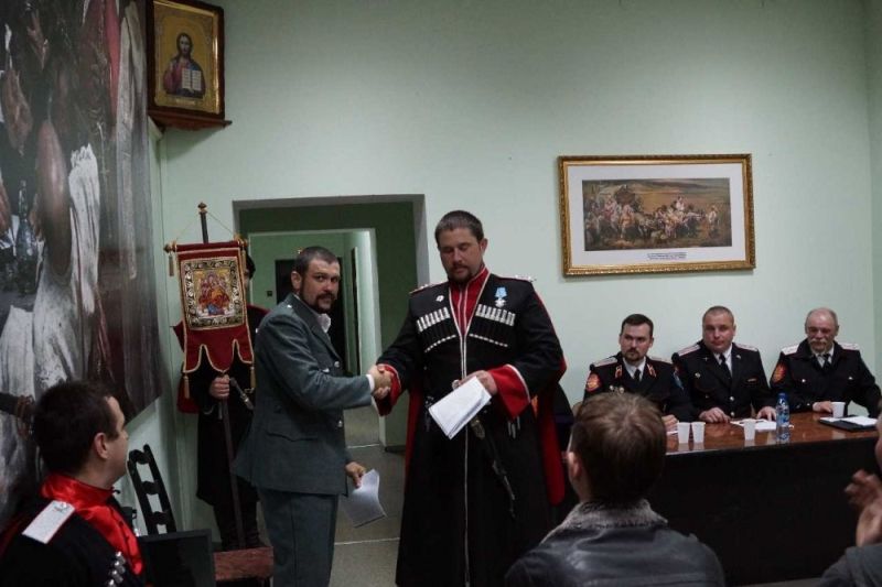 В завершении избранный атаман зачитал приказ о присвоении казачьих чинов. Четырём молодым казакам куреня проявившим себя в месячнике