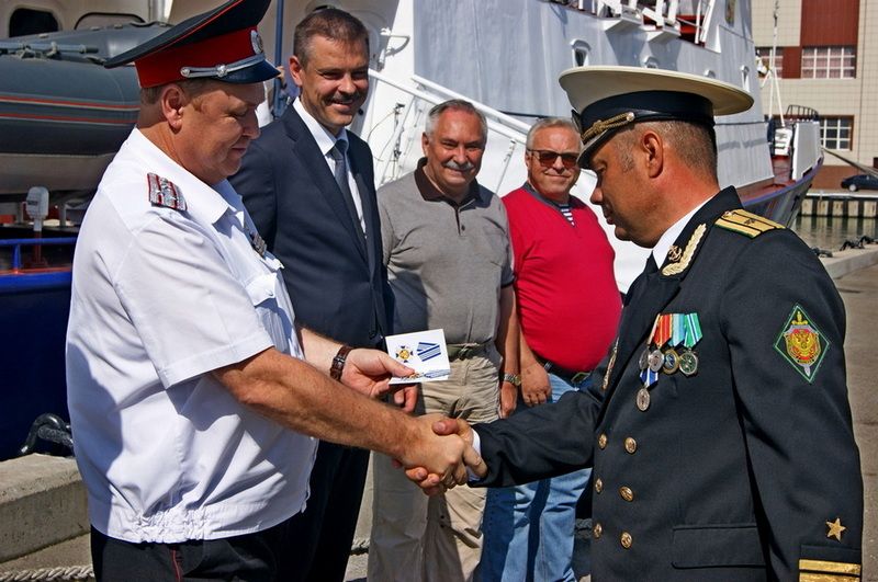 Гостей встретил командир корабля капитан Эдуард Мальцев вместе со своим заместителем - капитаном 3 ранга Анатолием Гаращенко.