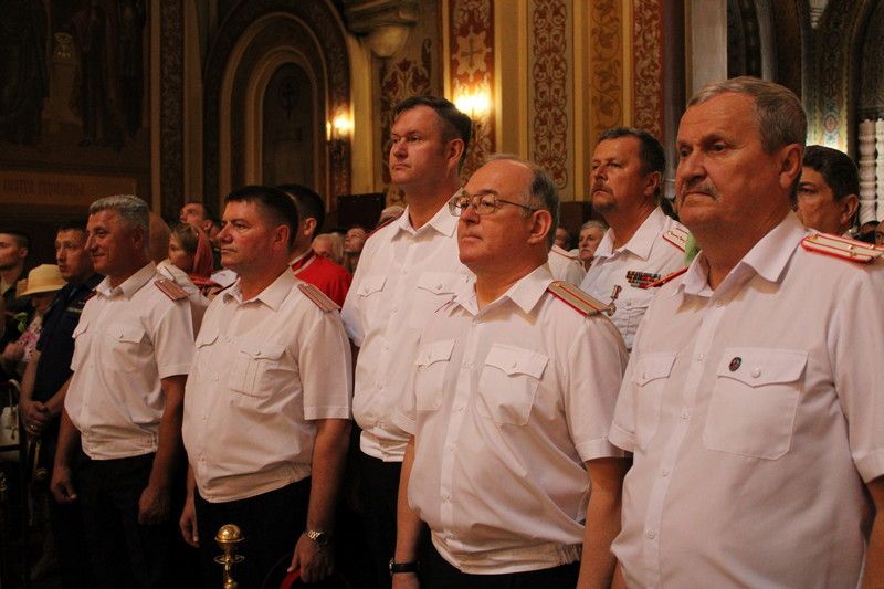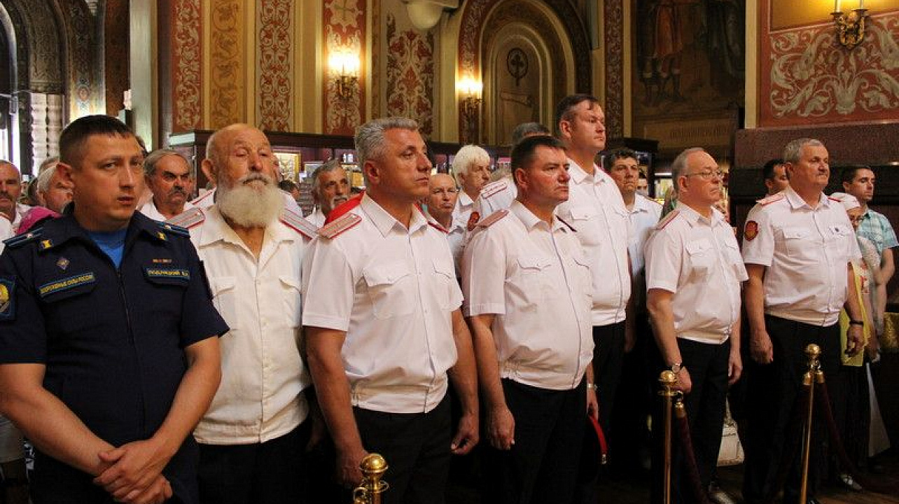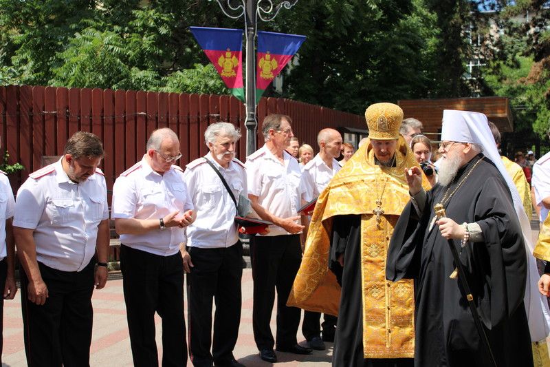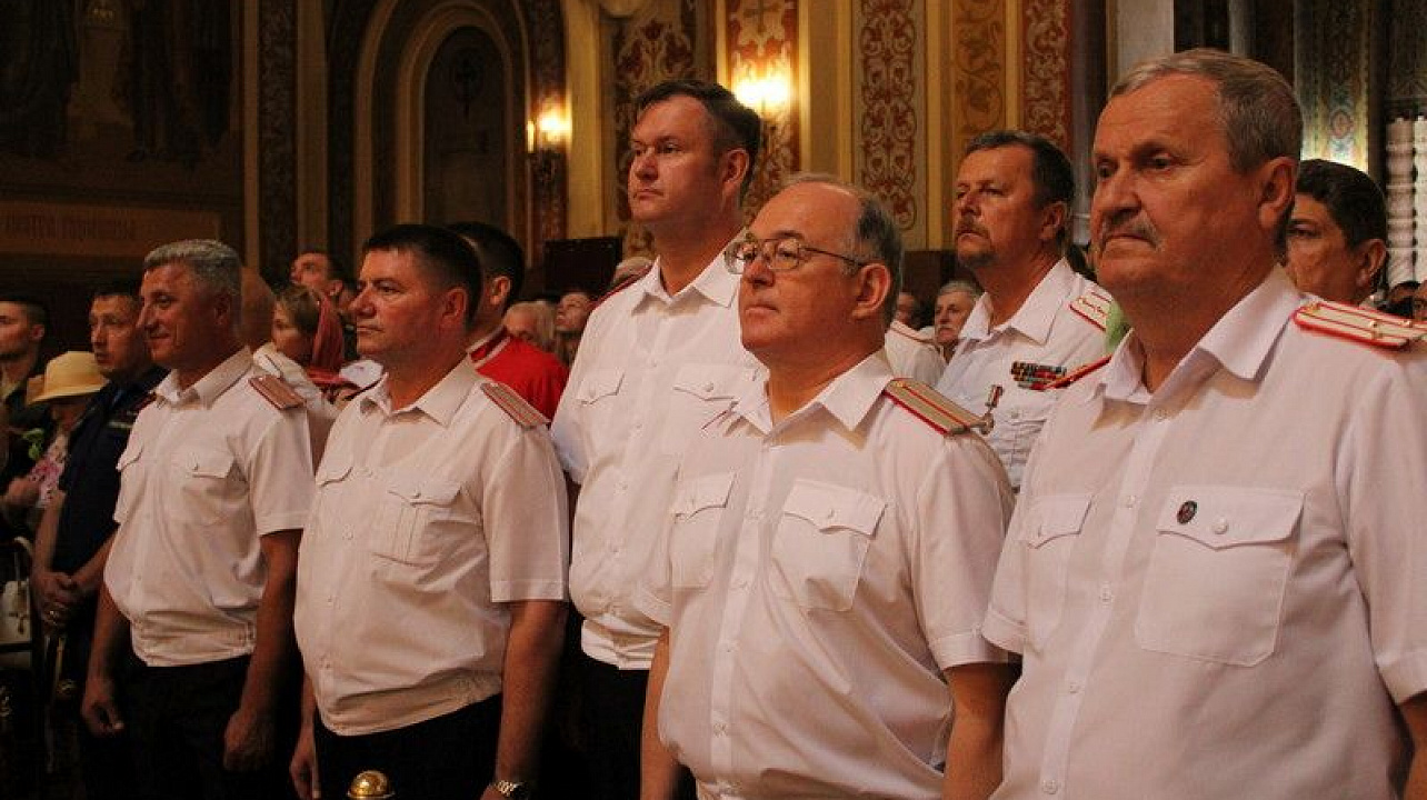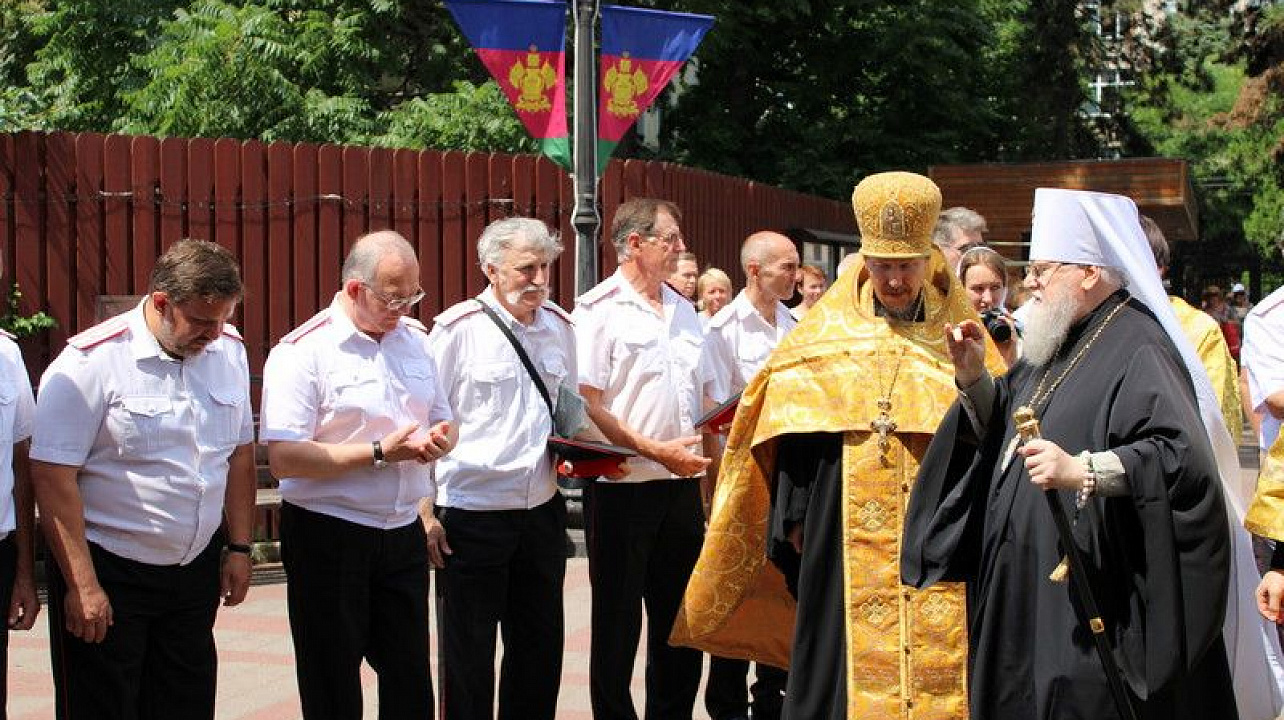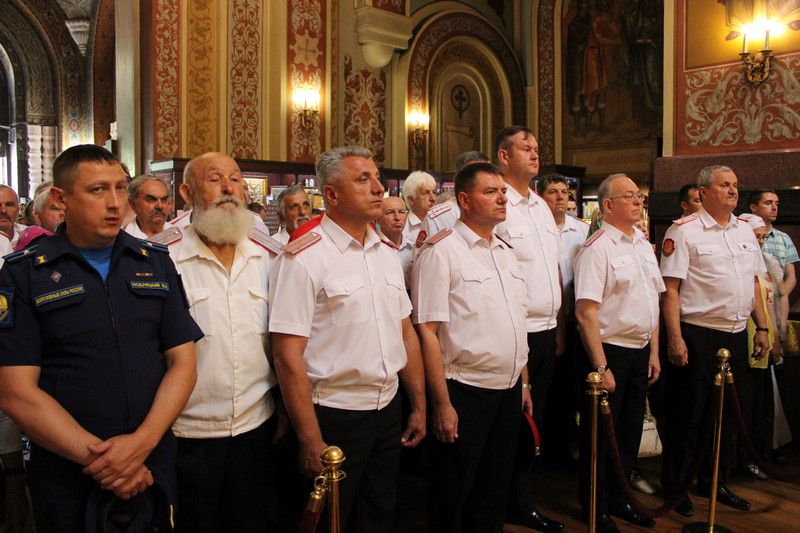 Казаки Екатеринодарского районного казачьего общества во главе с атаманом Сергеем Васиным приняли участие во встрече главной иконы Вооруженных Сил России "Спаса Нерукотворного".