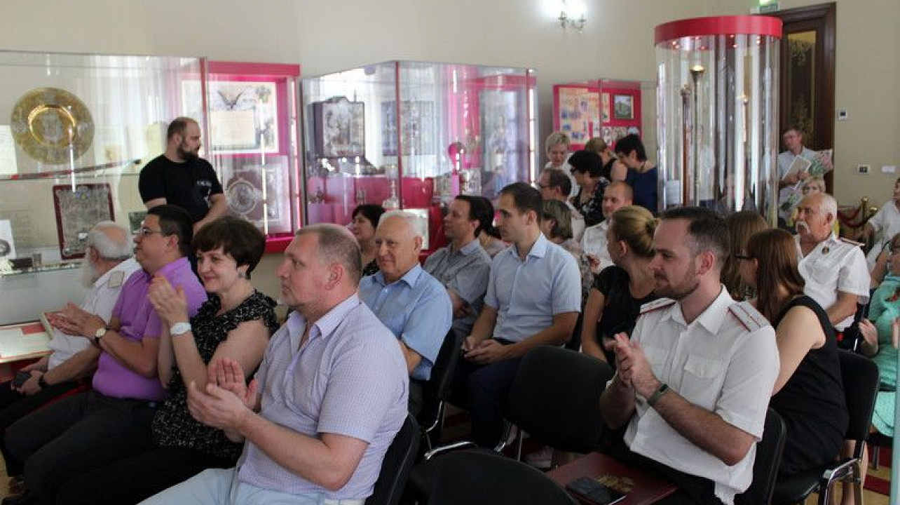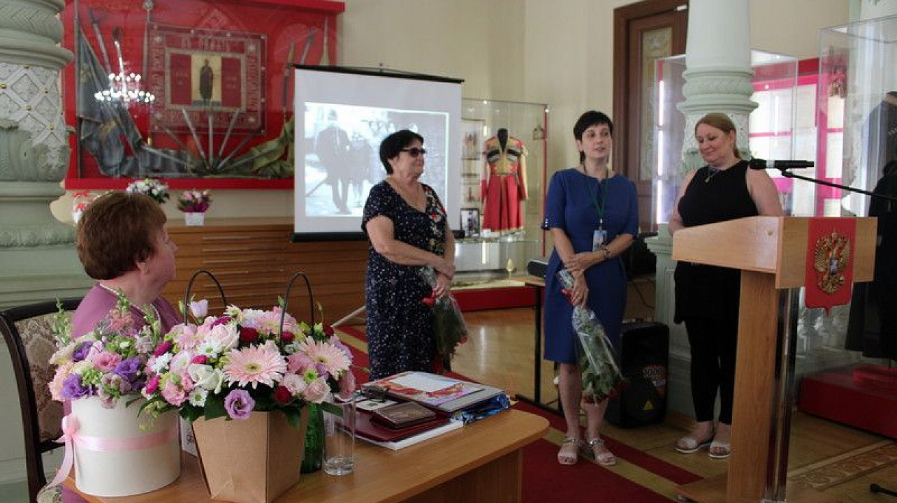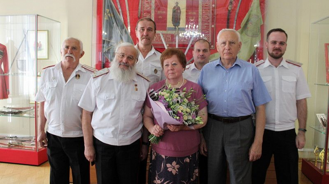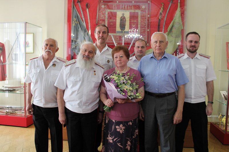 Казаки Екатеринодарского районного казачьего общество вместе с научными сотрудниками музея имени Фелицына, друзьями и коллегами собрались в зале «Регалий и реликвий Кубанского казачьего войска» в музее-заповеднике имени Фелицына, что бы поздравить с 70-летним юбилеем Наталию Александровну Корсакову, которая собрала не малую часть экспонатов, регалий и реликвий кубанских казаков и внесла большой вклад в изучение Кубанского казачьего войска.