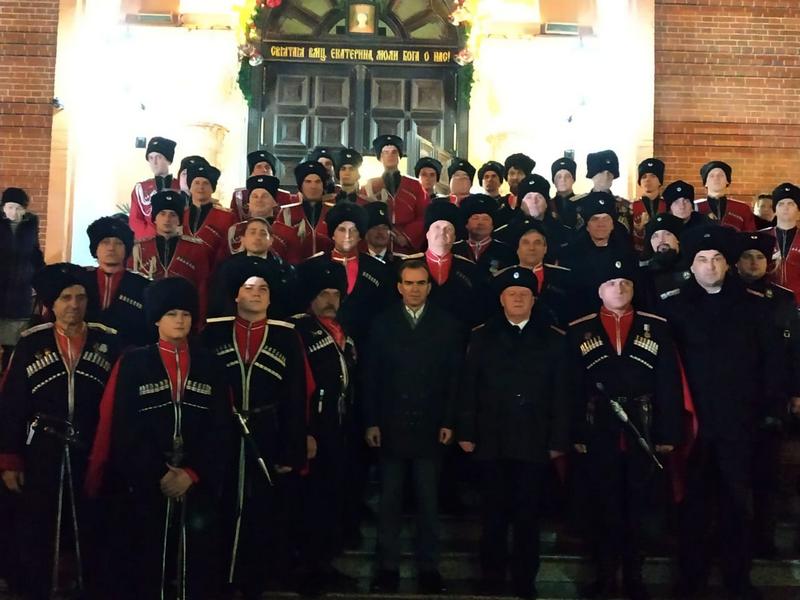 Одна из самых многочисленных служб прошла в Свято-Екатерининском кафедральном соборе. Службу провёл митрополит Екатеринодарский и Кубанский Исидор. На всенощную службу в Свято-Екатерининский собор пришли более ста казаков.
