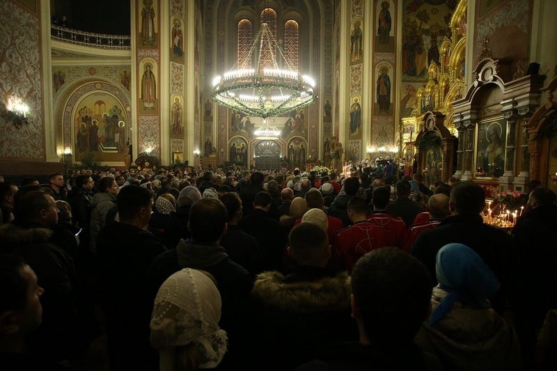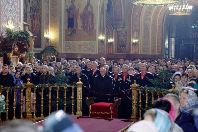 Рождество Христово — один из главных христианских праздников. Поэтому казаки города Краснодара вместе с членами семей и друзьями посещали городские храмы, где могли помолиться за Божественной Литургией.