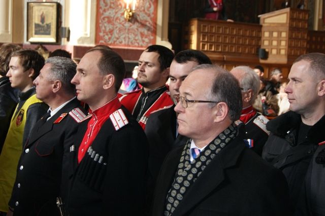 Вечером 5 февраля, в Краснодарском аэропорту, казаки Екатеринодарского районного казачьего общества встретили чудотворную икону Феодоровской Божией Матери, прибывшую из города Костромы, по просьбе губернатора Краснодарского края Александра Ткачёва и по благословлению Святейшего Патриарха Московского и всея Руси Кирилла.