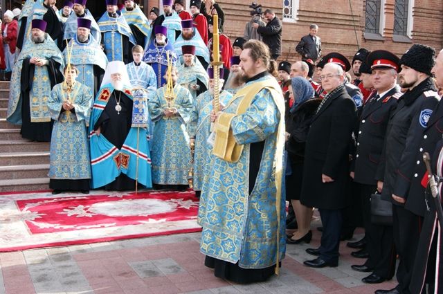 Митрополит Екатеринодарский и Кубанский Исидор, заместитель главы города Краснодара Сергей Васин и более 100 казаков Екатеринодарского районного казачьего общества во главе с атаманом Александром Пащенко встретили Святыню, после чего в храме прошла торжественная литургия.
