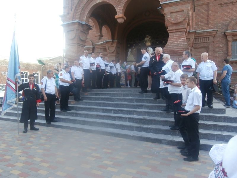 Более 60 казаков во главе с атаманом Александром Пащенко присутствовали на праздничном богослужении, которое проводил Митрополит Екатеринодарский и Кубанский Исидор. На праздничное богослужение прибыл атаман Кубанского казачьего войска, казачий генерал Николай Долуда. Войсковой атаман поприветствовал казаков Екатеринодарского районного казачьего общества, отметив их высокую дисциплину и внешний вид.
