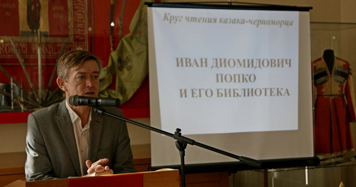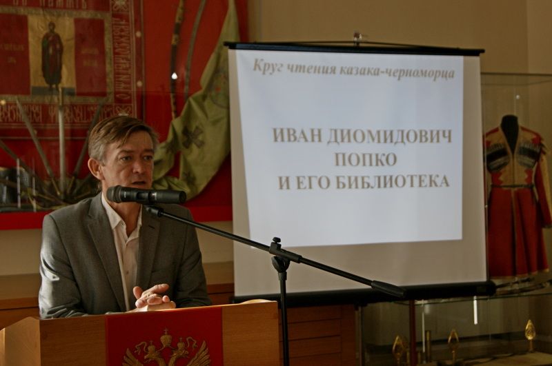 Для научных сотрудников и представителей казачества казак наставник Екатеринодарского районного казачьего общества,кандидат исторических наук, доцент кафедры истории, культурологии и музееведения Краснодарского государственного института культуры Игорь Григорьевич Иванцов провел электронную презентацию «Круг чтения казака-черноморца. Иван Диомидович Попко и его библиотека».