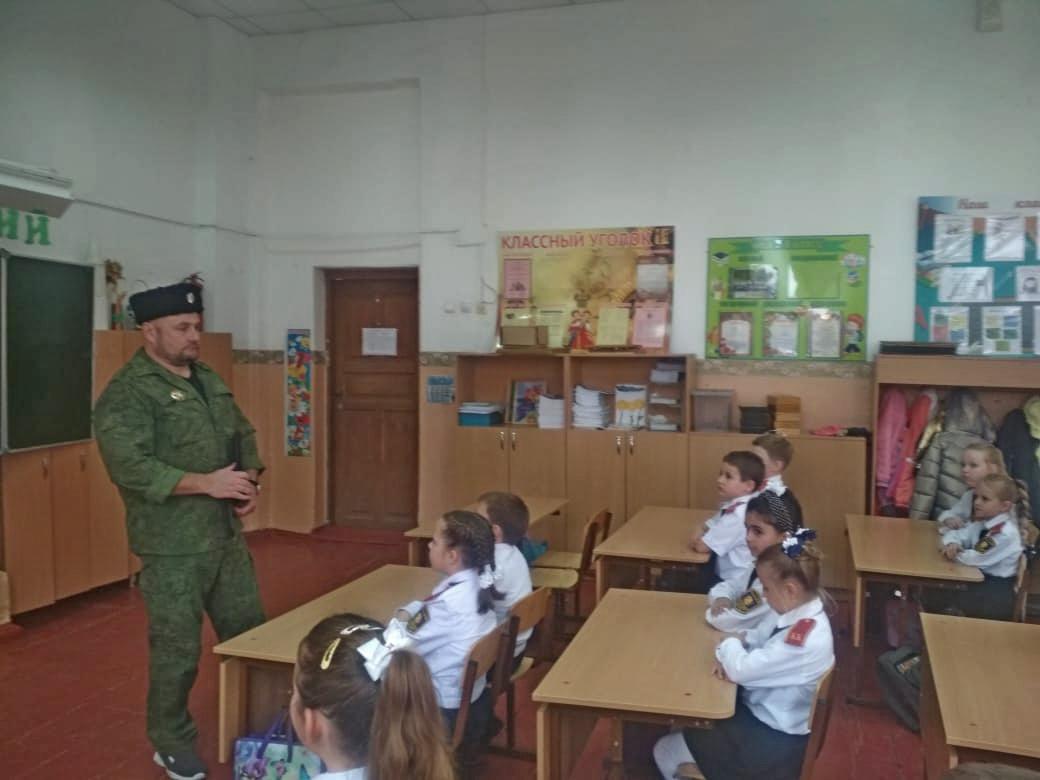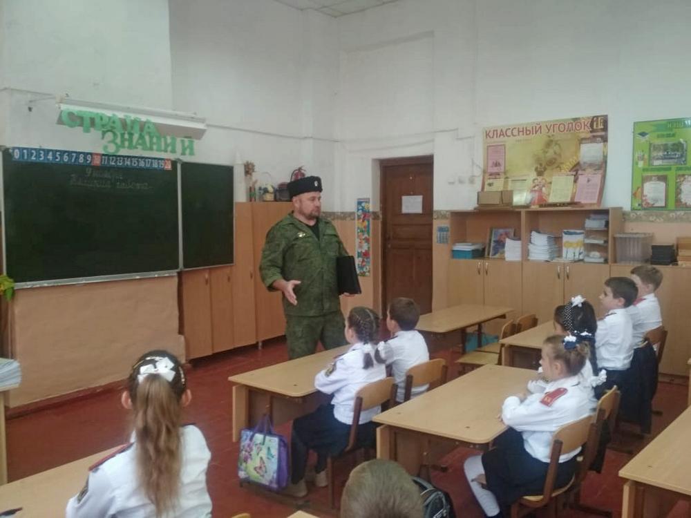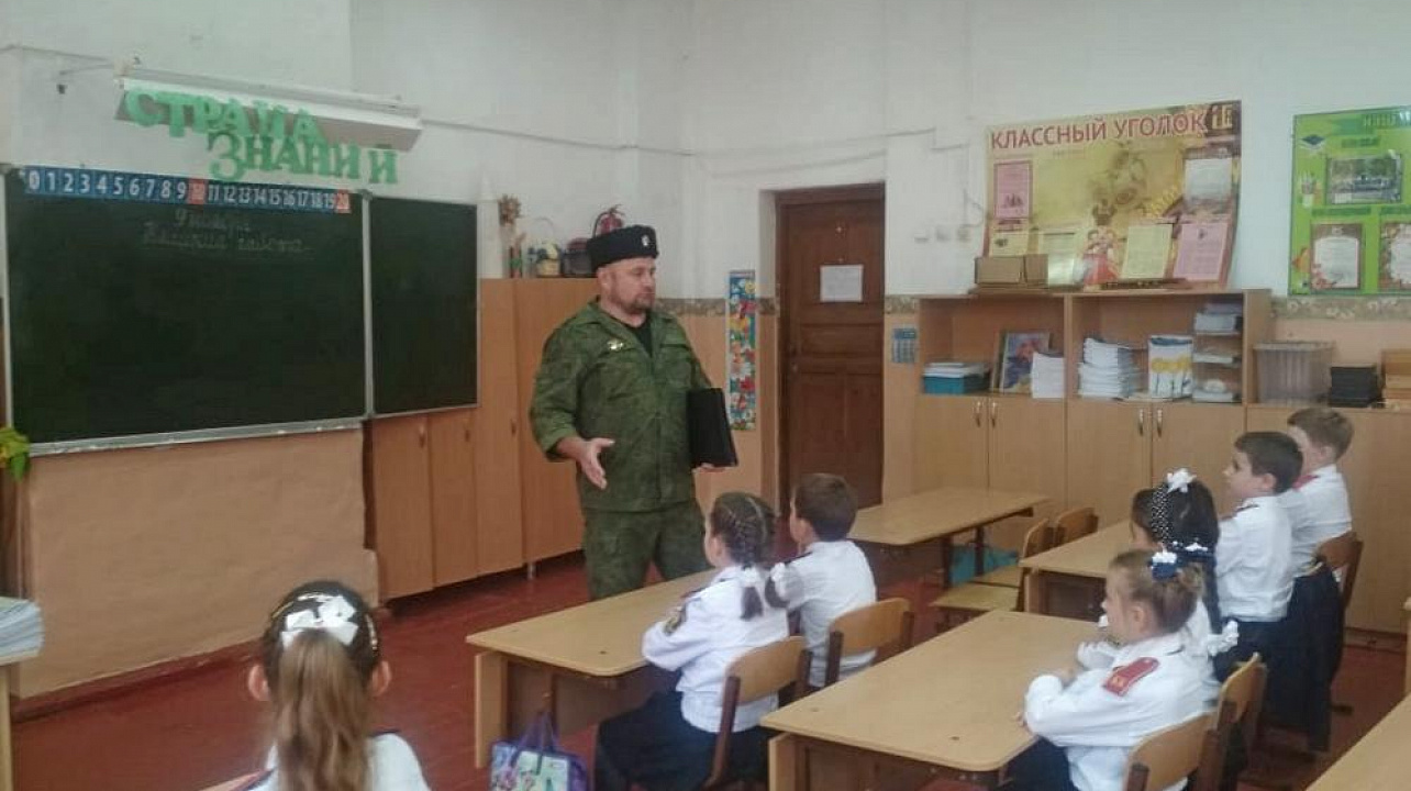 09 ноября в МАО СОШ № 86 станицы Старокорсунской прошёл урок, посвящённый Герою России, легендарному лётчику, кубанскому казаку Сергею Вячеславовичу Палагину. Провёл урок сотрудник муниципального казённого учреждения «Центр развития традиционной казачьей культуры города Краснодара», осуществляющий деятельность казака-наставника, Иван Вшивков.