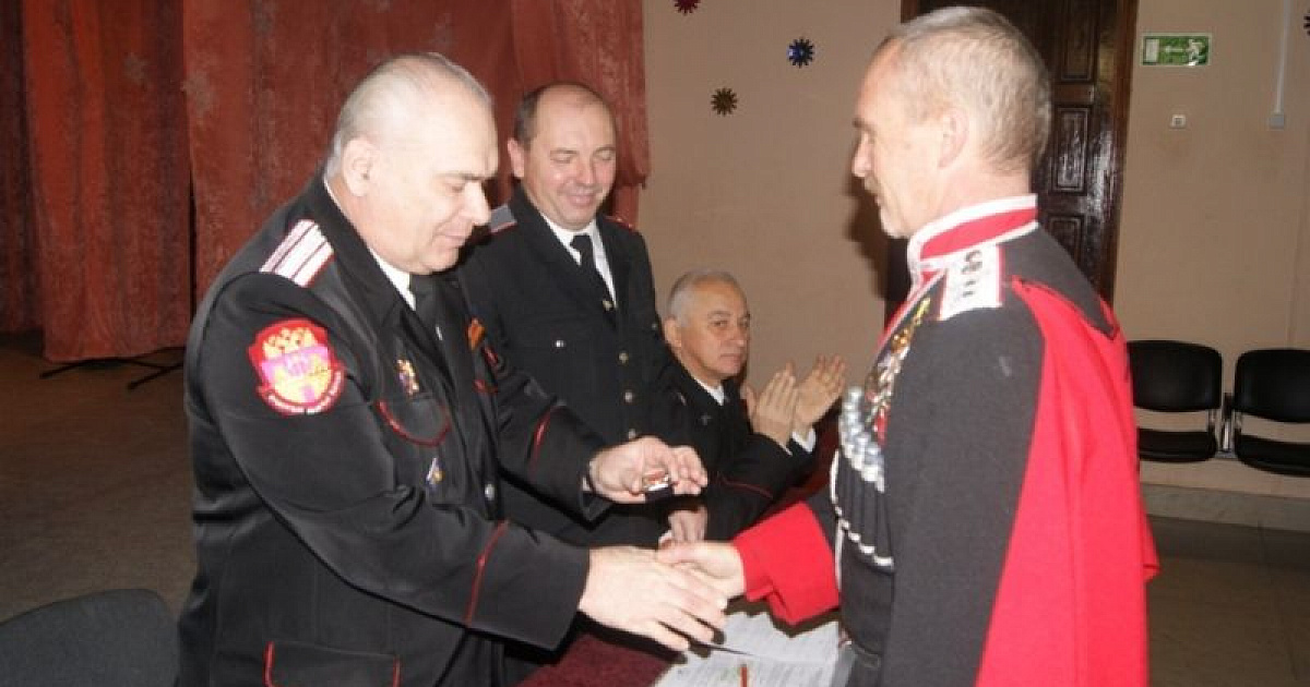 Затем слово взял атаман Сергей Лоскутов, выступив с отчётом о работе проведённой хуторским казачьим обществом за год.