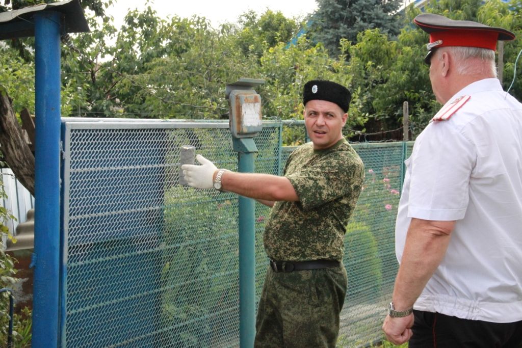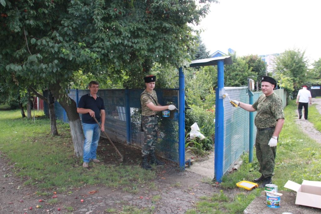Через несколько часов работы казаков ворота и более 30 метров заборного ограждения их домовладения были приведены к единому архитектурному облику и засверкали на солнце свежей краской.