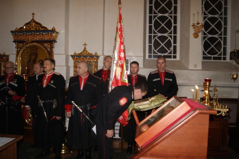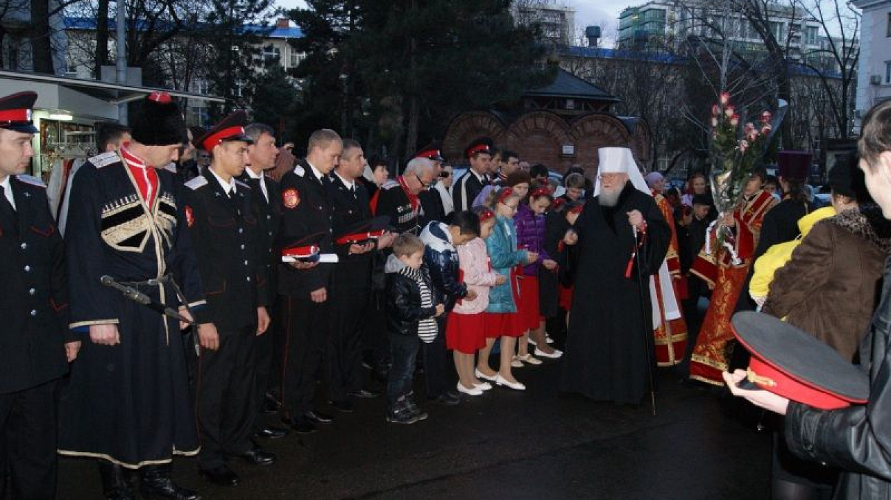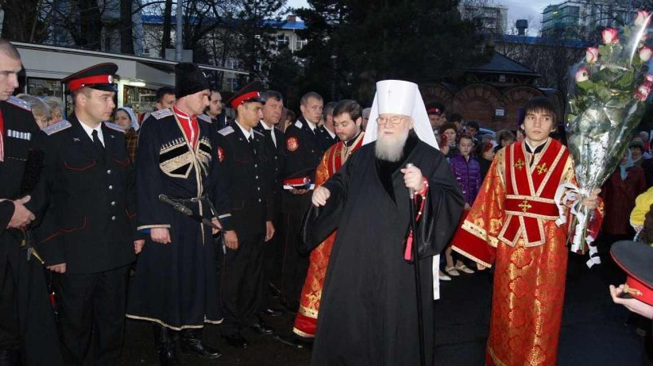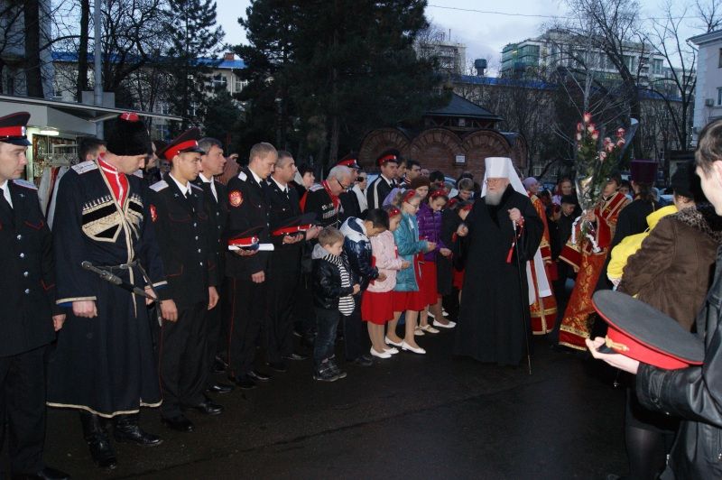 После присяги казаки встретили Митрополита Екатеринодарского и Кубанского Исидора, последовали в храм и приняли участие в праздничном богослужении, которое провел Владыка Исидор.