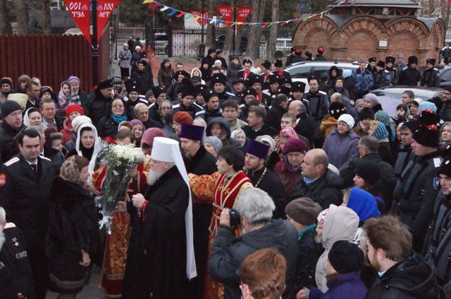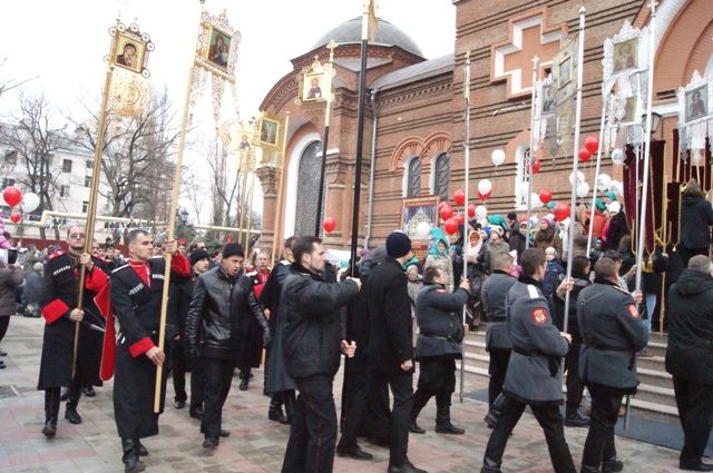 Казаки кубанского казачьего войска во главе с атаманом, казачьим генералом Николаем Долудой приняли участие в богослужении.