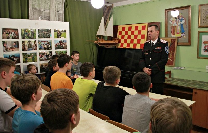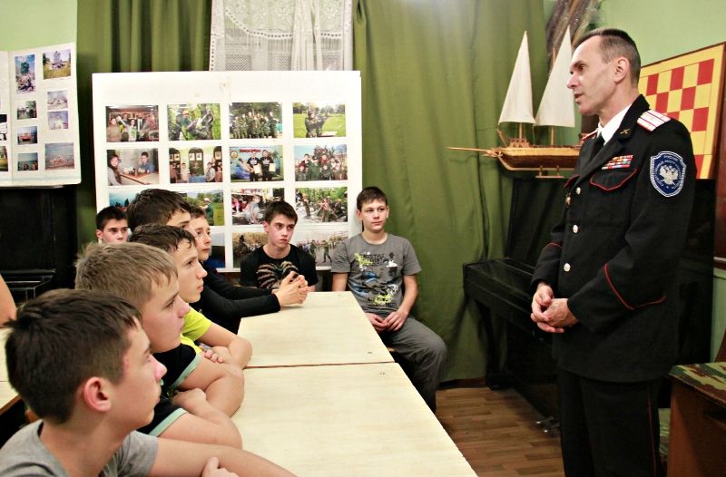 Беседу с курсантами ДВПО «Разведчик» на тему: «Героизм российских воинов при защите Отечества» провёл заместитель атамана Екатеринодарского районного казачьего общества, ветеран войны в Афганистане, войсковой старшина В.А.Кирсанов.