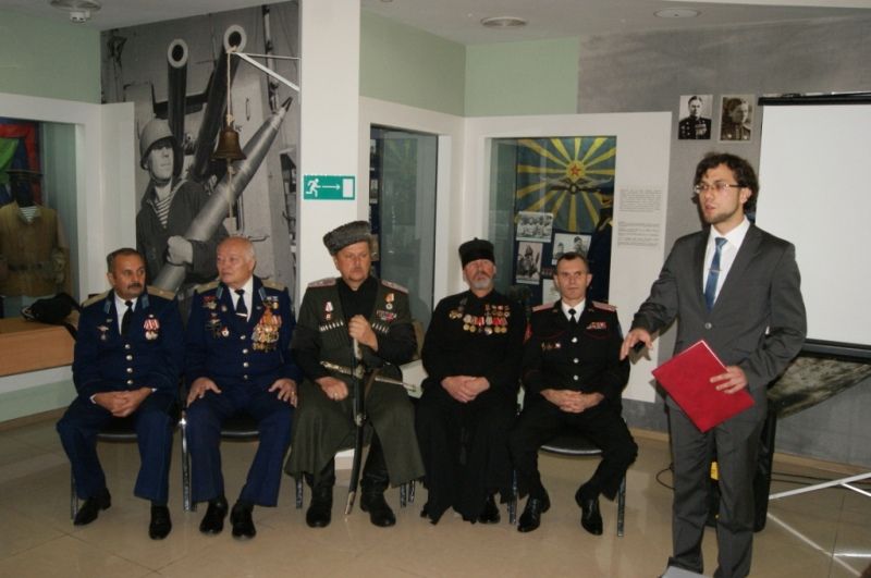 На втором этаже музея-заповедника в зале, посвящённом Великой Отечественной войне ведущий представил почётных гостей мероприятия: заместителя атамана Екатеринодарского районного казачьего общества, председателя Краснодарского отделения Российского Союза ветеранов Афганистана, войскового старшину Виктора Кирсанова; ветерана боевых действий в Афганистане, священнослужителя Свято-Георгиевского храма отца Георгия (Дубских); казака Пашковского станичного казачьего общества, участника Афганских событий, участника событий воссоединения Крымского полуострова с Россией, подъесаула Олега Белого; ветеранов боевых действий в Афганистане: майора запаса ВВС, Николай Набожинский и майора запаса ВВС Константин Лукьяненко.