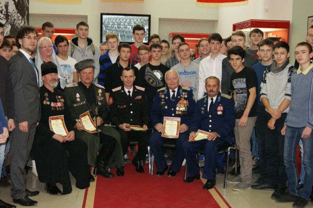 В завершении встречи работники музея вручили благодарственные письма почётным гостям, а студентам пожелали успехов в учёбе. Напомнив изречение великого Русского полководца Александра Суворова: «Тяжело в учении – легко в бою!».
