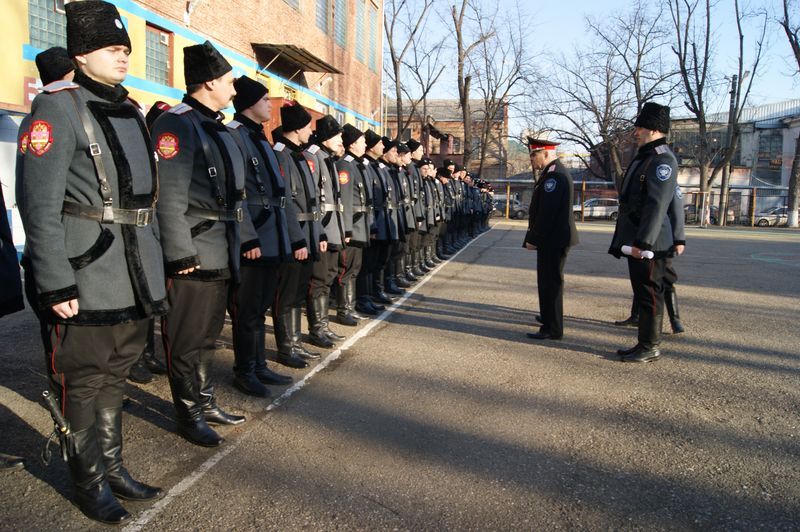 8 февраля на территории Краснодарского монтажного техникума прошёл строевой смотр казаков-дружинников Екатеринодарского районного казачьего общества для участия в парадах Кубанского казачьего войска.